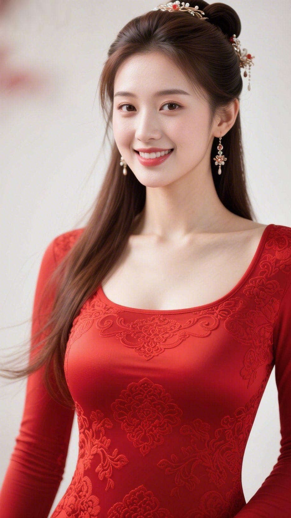 红韵染风华 一袭红裳,似撷来暮天的绯云,将东方的清雅风骨凝于衣袂。青丝轻绾,簪头细碎银光映得眉眼澄澈,唇角轻扬的笑意,如晨露漫过青荷,淌过心底最柔软的角落。 红是东方独有的诗意底色,是融于骨血的雅致风华,无需张扬,自有清宁。衣间缠枝纹样婉转舒展,是时光沉淀的温柔,是东方女子独有的从容,一颦一笑,皆藏着岁月赋予的安然。 生活总在步履匆匆中失了温润,而这抹红入眼,方知人间美好,皆在这般细碎的清欢里。不逐浮华,只守本心,一身红裳,一腔热忱,便是生活最好的模样。 东方美学 红裳雅致