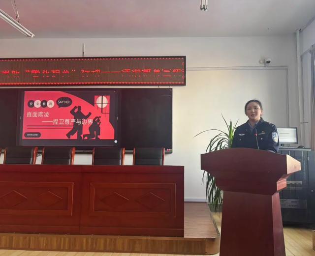 为全方位守护未成年人健康成长,蛟河市公安局充分发挥职能优势,精心部署开展“警花护苗”专项工作,着力在法治宣传、关爱帮扶、环境优化等方面构建坚实保护网。12月2日,女民警杨男、赵心鸣作为工作队代表,走进校园,开展了一场内容充实、形式生动的“送法进校园”系列宣传活动。