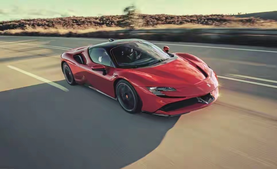 法拉利SF90是法拉利旗下首款量产插电式混合动力车型,于2019年推出,其名称是为了向法拉利车队成立90周年致敬 。以下是关于它的详细介绍:- 基本信息:法拉利SF90有硬顶跑车和硬顶敞篷车两种车身形式,座位数为2门2座,驱动形式为中置四驱,变速箱为8挡双离合,官方指导价为498.80-510.80万。- 动力系统 :搭载由90°涡轮增压3.9T V8发动机与三台电动机组成的混动系统,综合输出功率高达1000cv。其中发动机最高输出功率达780cv,电动机最大功率为162kW。车辆提供eDrive、混合动力、性能、排位赛四种动力操控模式,纯电续航里程为25公里。- 性能表现 :0-100公里/时加速时间仅需2.5秒,0-200公里/时加速时间为6.7秒,最高时速可达340公里/时,重量功率比为1.57kg/cv,在菲奥拉诺赛道圈速为79秒。- 设计特点 :外观上,纤细狭长的大灯与刹车进气口组成C字形,搭配矩阵LED前大灯技术,极具未来感。车尾的闭合式襟翼是创新的下压力管理设备。内饰采用全新人机交互界面,配备16英寸曲面高清全数字化中央仪表盘,方向盘带有触摸板和大量触控按钮。- 车型版本 :法拉利首次为SF90提供标准版和Assetto Fiorano版两个版本,后者采用了基于GT赛车打造的Multimatic减震器,还配备碳纤维、钛金属等轻量化零部件,整车减重30公斤。 大v聊车
