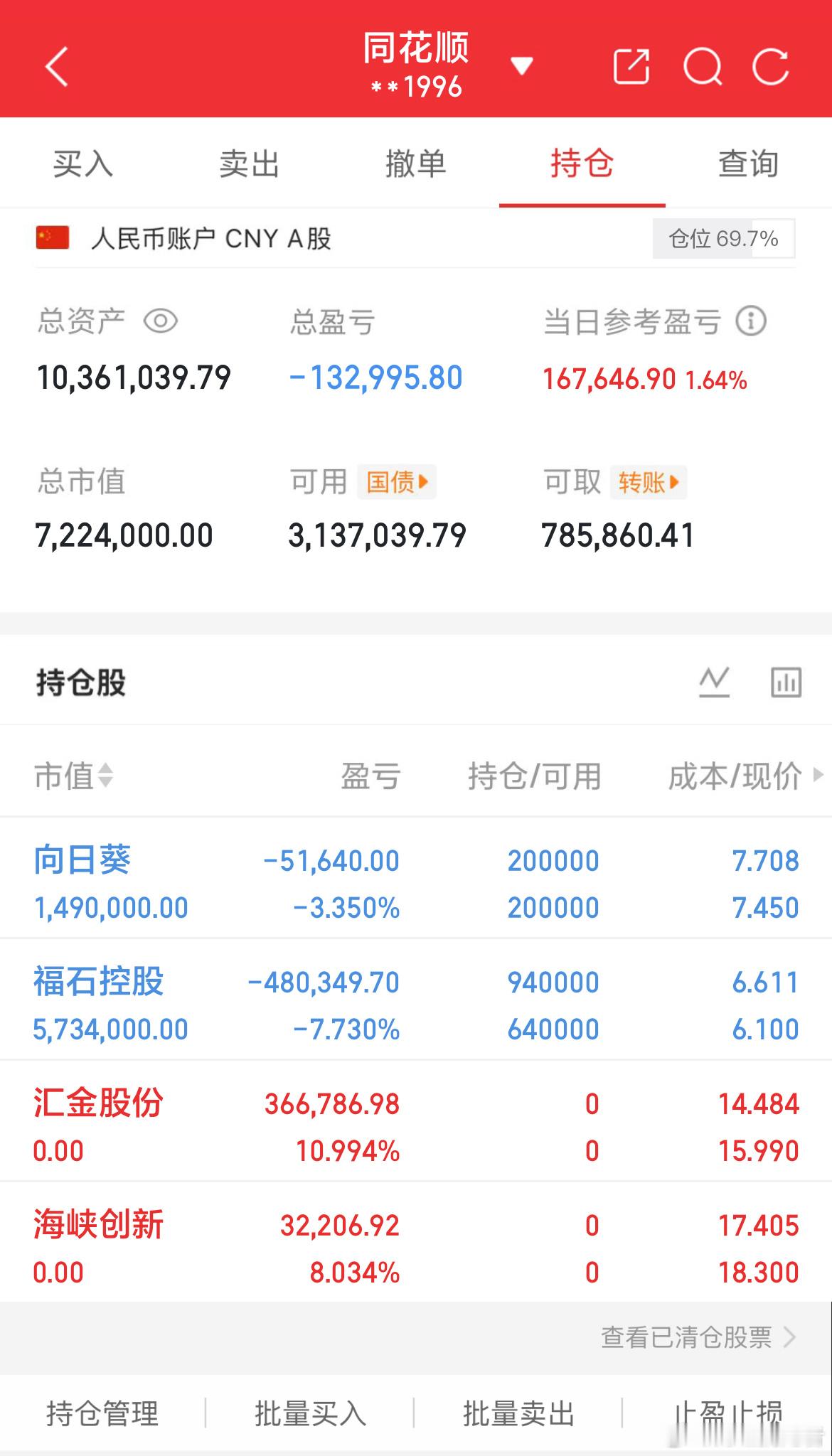 持有:$福石控股(SZ300071)$ 持有:向日葵(SZ300111) 向日葵(SZ300111)已出:$汇金股份(SZ300368)$ $海峡创新(SZ300300)$ 我将用真实账户记录每一天的操作,用行动见证翻倍之路!我相信,实盘就是最好的证明。只要稳扎稳打,终会一路长虹!点赞的发财发财发财火箭火箭火箭今日看盘上证指数a股
