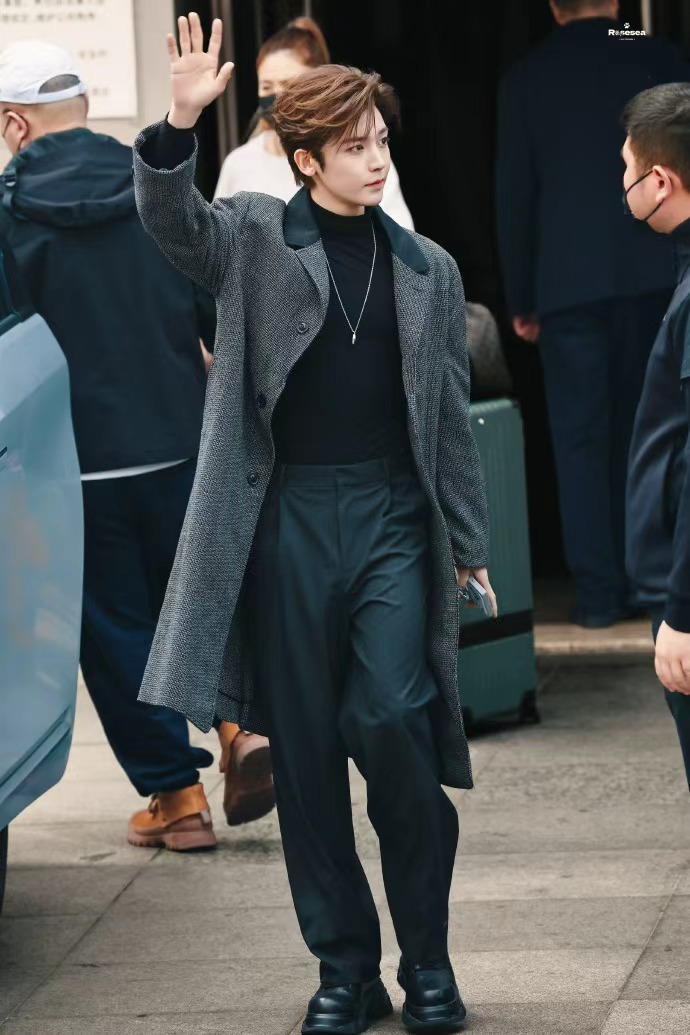 侯明昊穿大衣的古风小生侯明昊hi6上班大衣look 侯明昊hi6上班大衣look