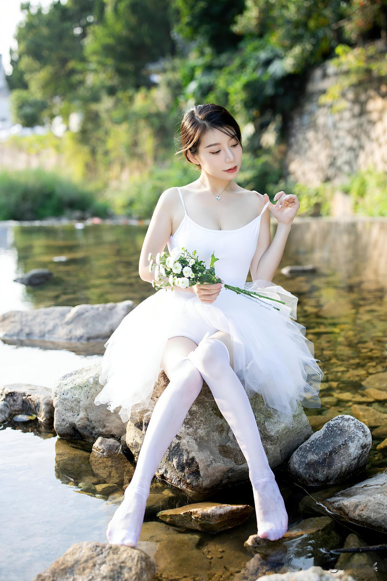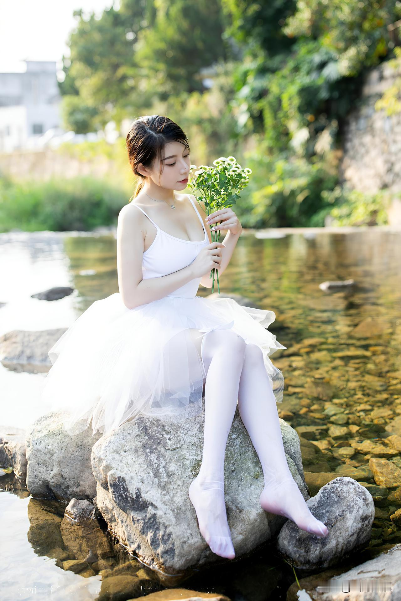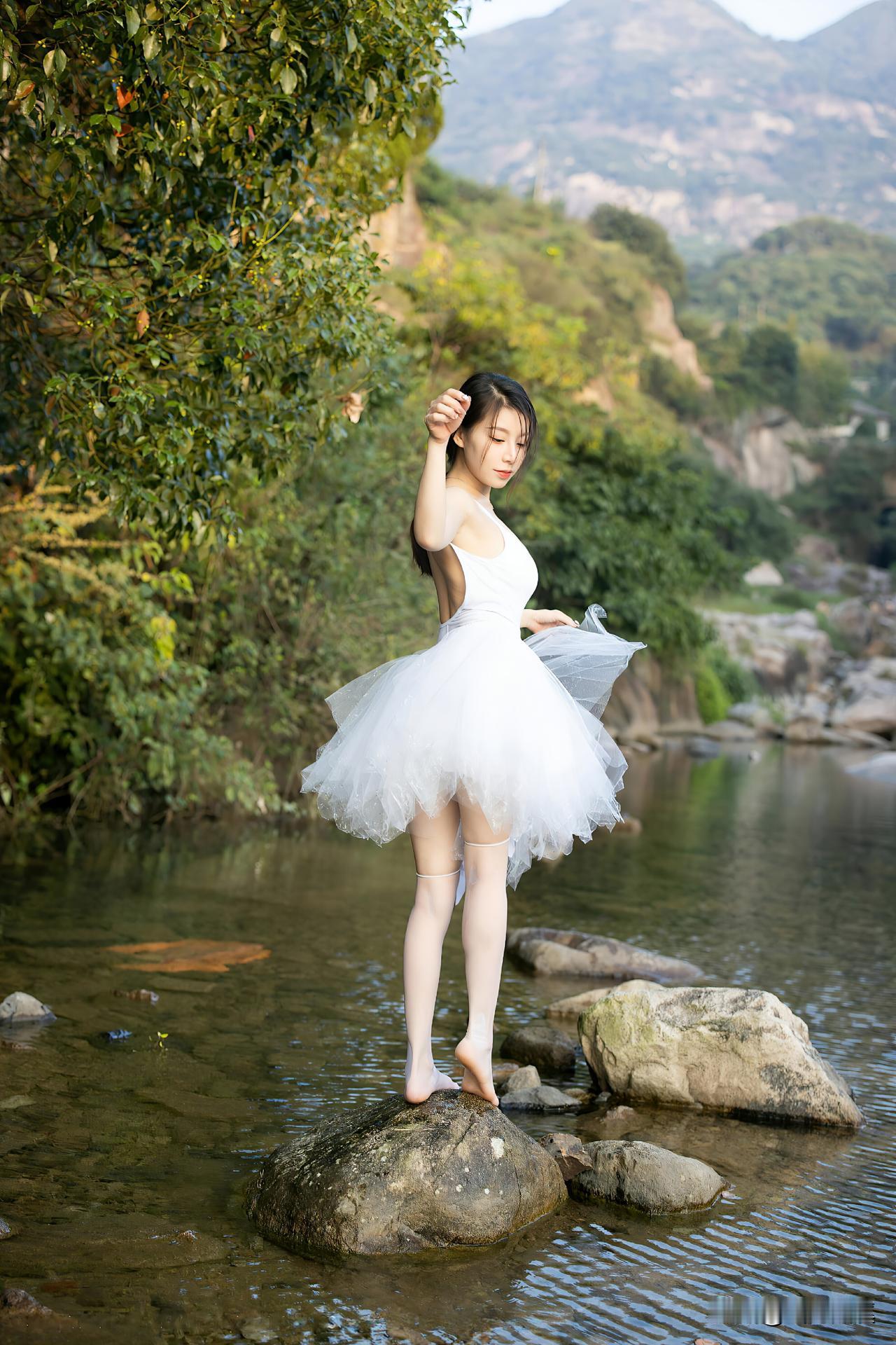 山间佳人笑青山环抱,绿意盎然,一位佳人立于木栏之旁,笑靥如花。她身着浅褐衣衫