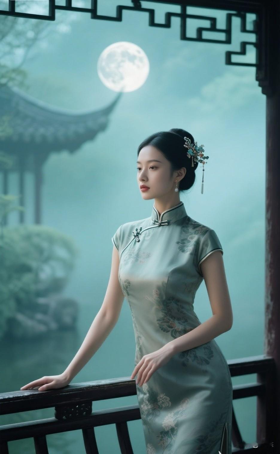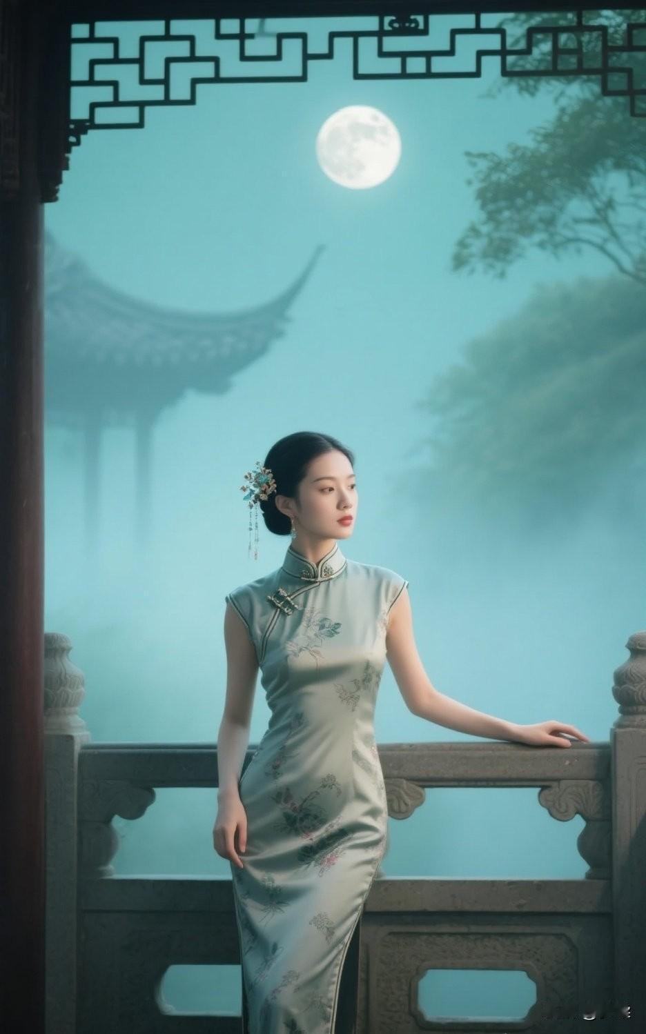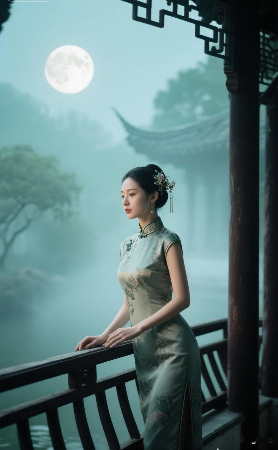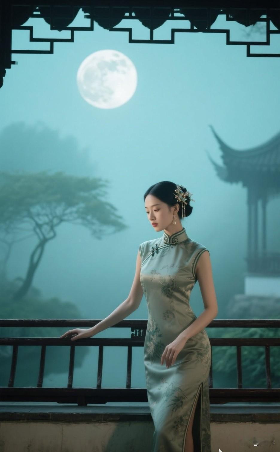 月夜朦胧,园林静谧。她身着淡青提花旗袍,立在回廊,发髻簪花添韵。中式窗棂框住圆月,远处飞檐隐于烟霭,古典与诗意交融,仿佛时光慢溯,一袭旗袍,承载东方雅韵,在这方天地,演绎独属于中式美学的浪漫清宵。你喜欢旗袍还是汉服 温柔风国风旗袍 国风穿搭旗袍 旗袍国风旗袍 还有个