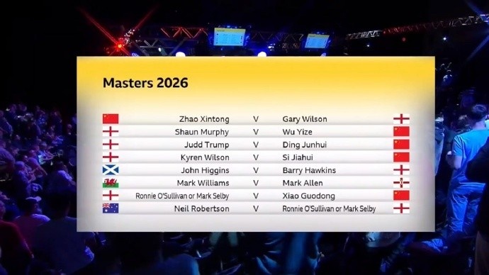 斯诺克大师赛首轮对阵:丁俊晖再战小特,赵心童vs加里·威尔逊