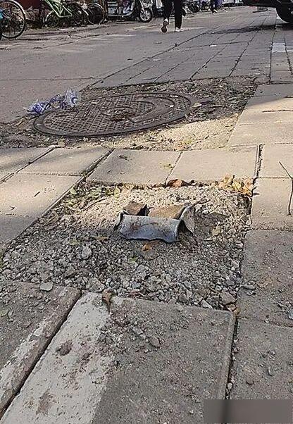 [记者调查]接到居民反映后,记者在大化生活区(东区)多个单元门前,均未看到公共充电桩的踪影,地面上遗留有拆除后的金属充电桩底座。