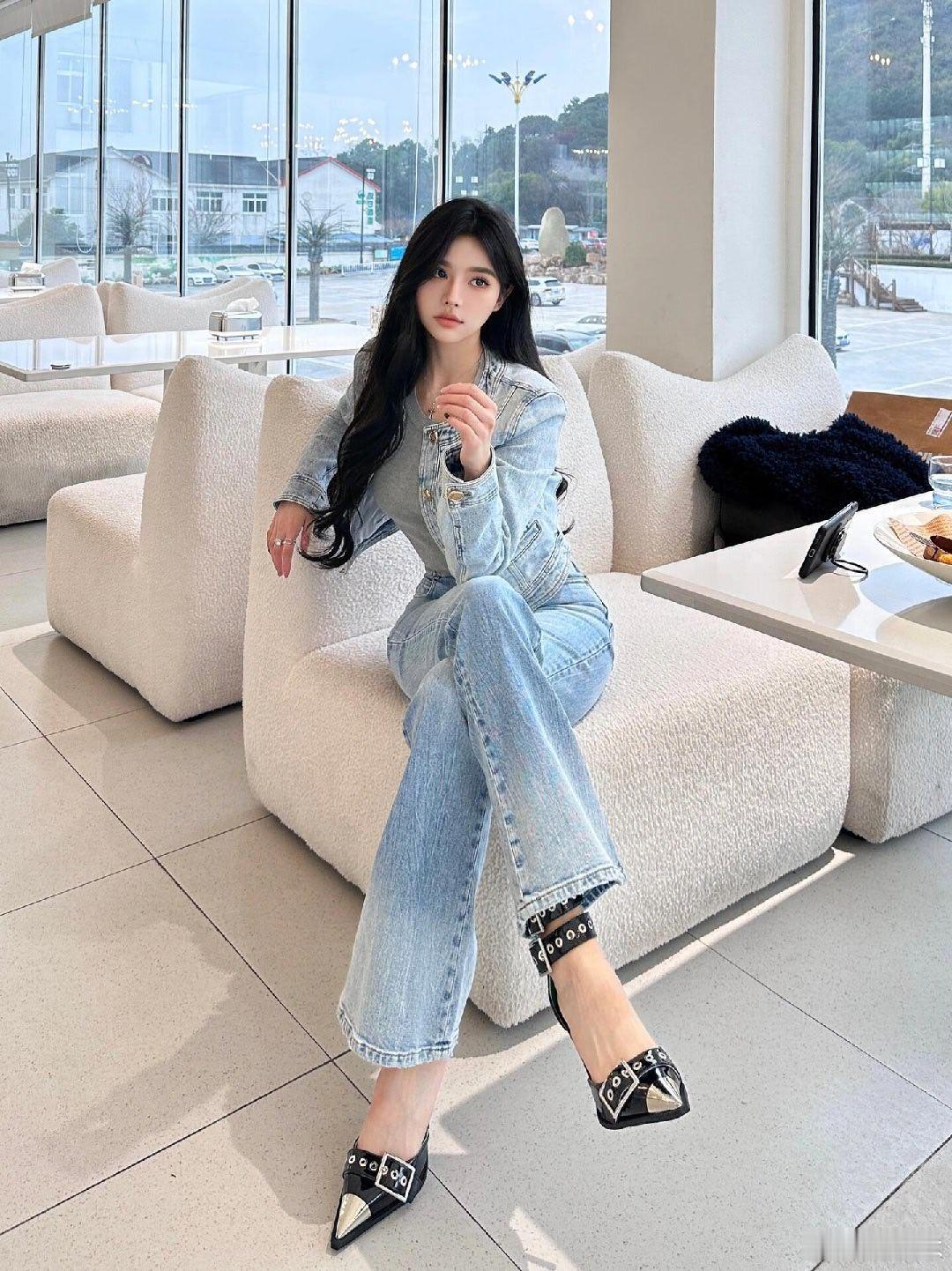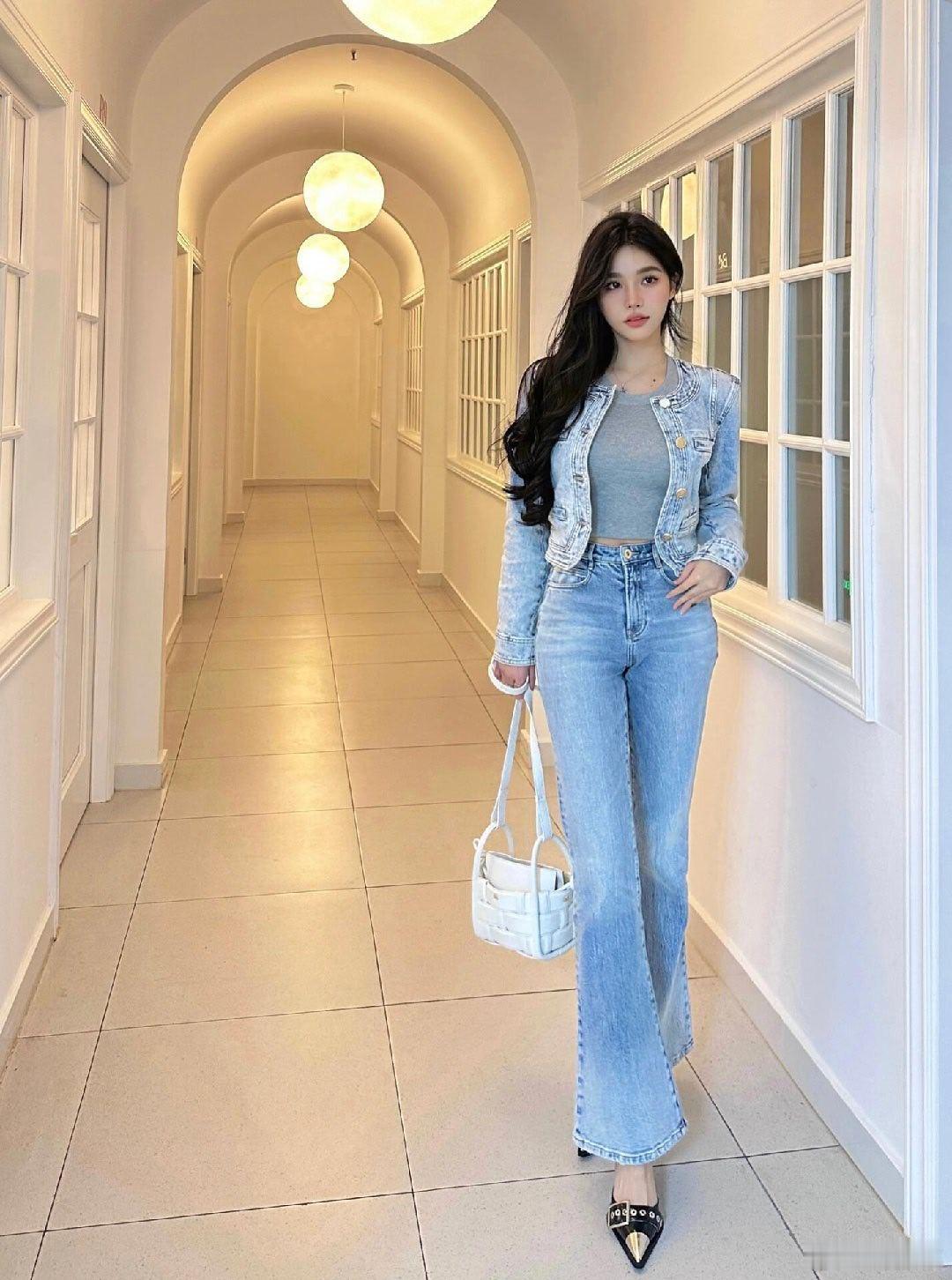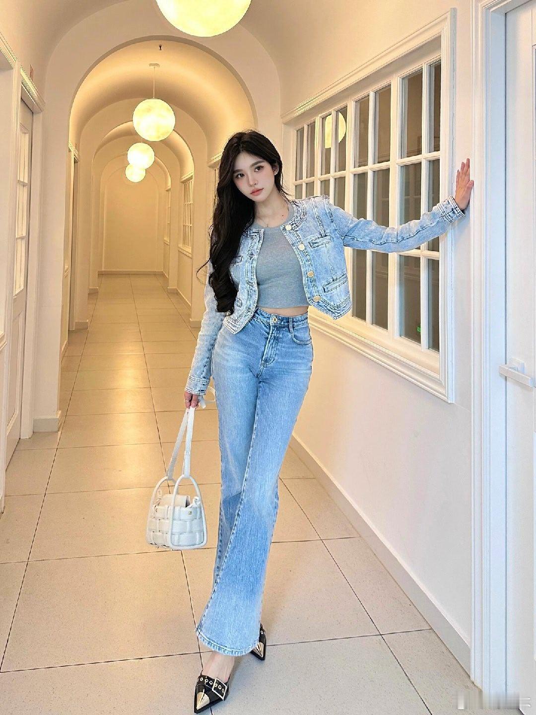 浅蓝色牛仔裤真的是温柔休闲风的万能搭子!柔软面料贴合身形,勾勒出自然腰线与挺翘臀