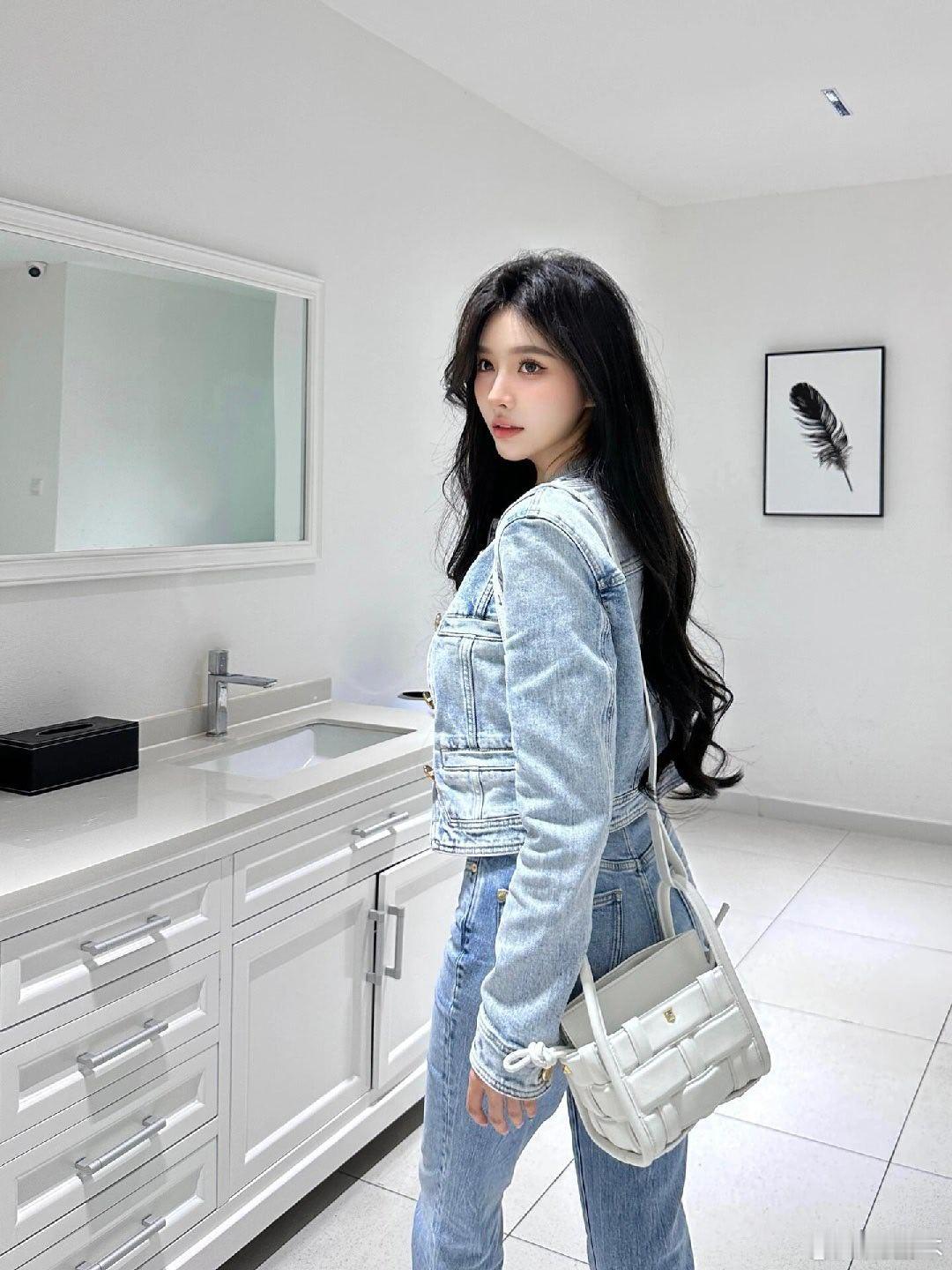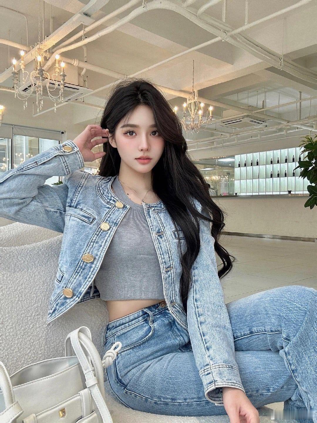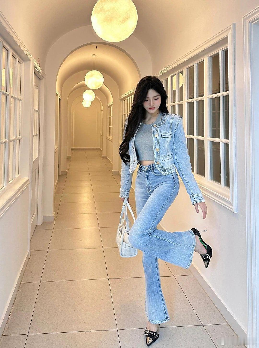 浅蓝色牛仔裤真的是温柔休闲风的万能搭子!柔软面料贴合身形,勾勒出自然腰线与挺翘臀