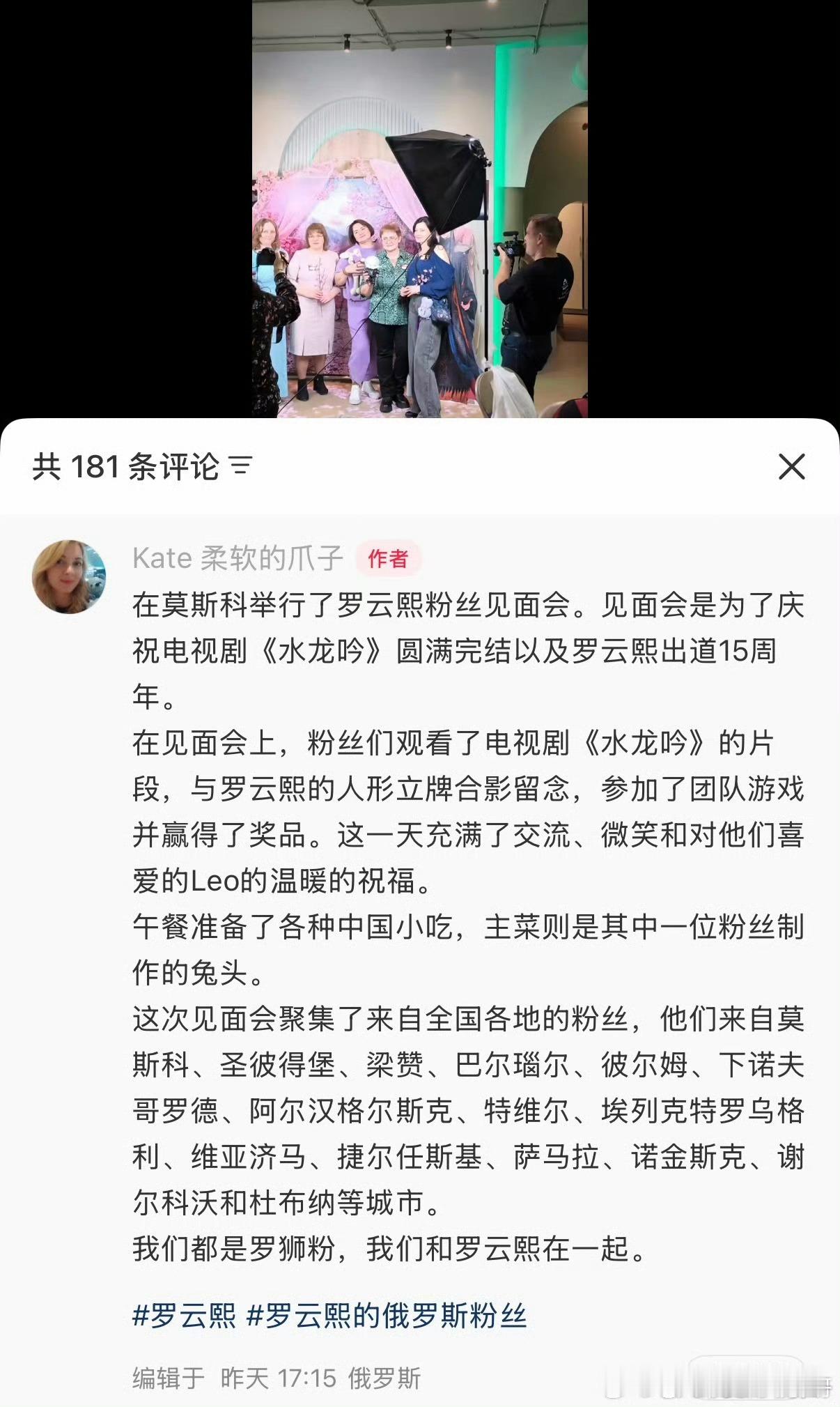 罗云熙莫斯科粉丝庆祝《水龙吟》完结和出道15周年