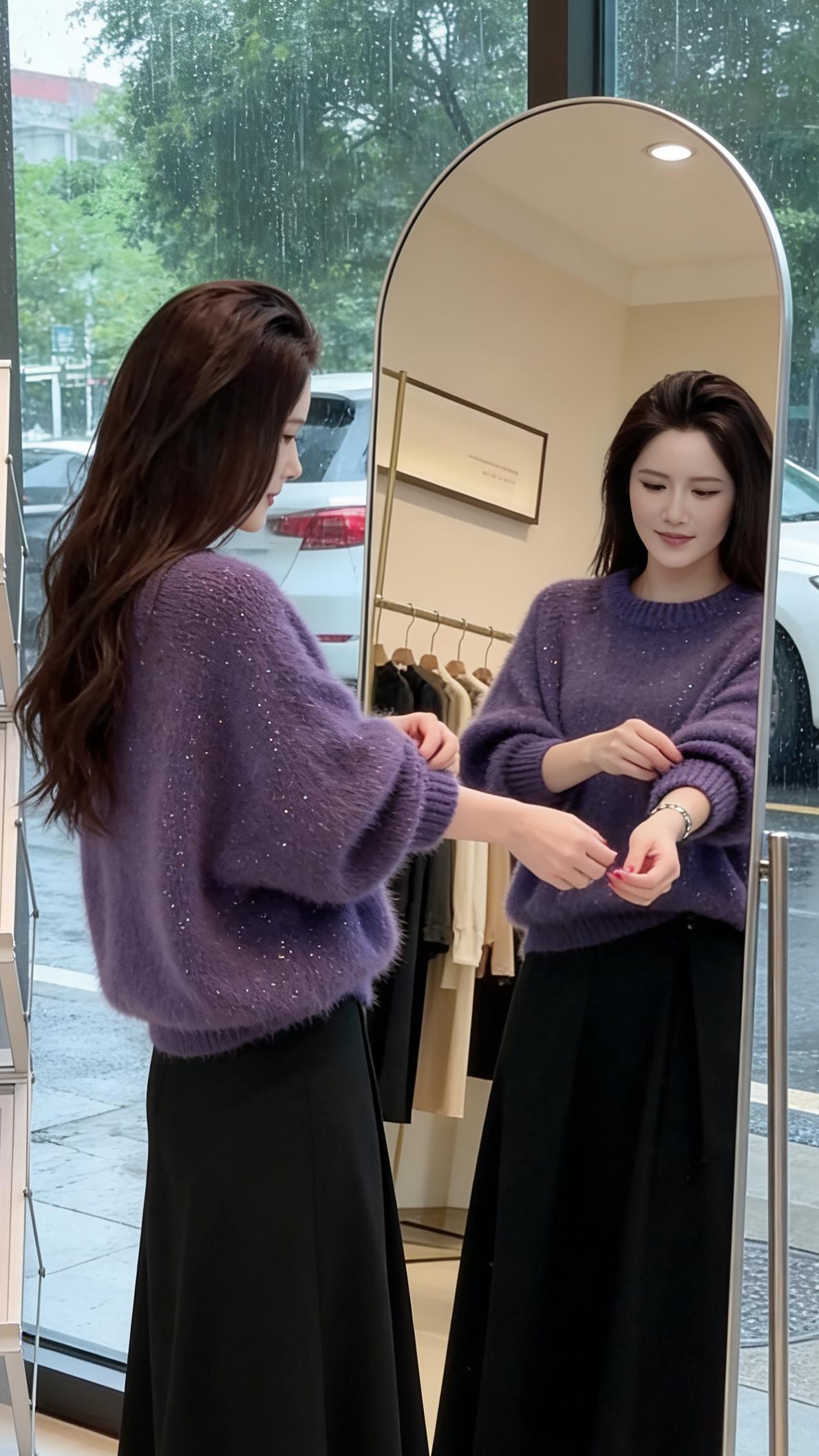 优雅穿搭指南:灰色毛衣+粉色长裙,简约而不失时尚感!