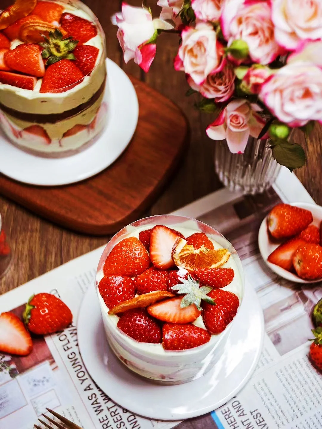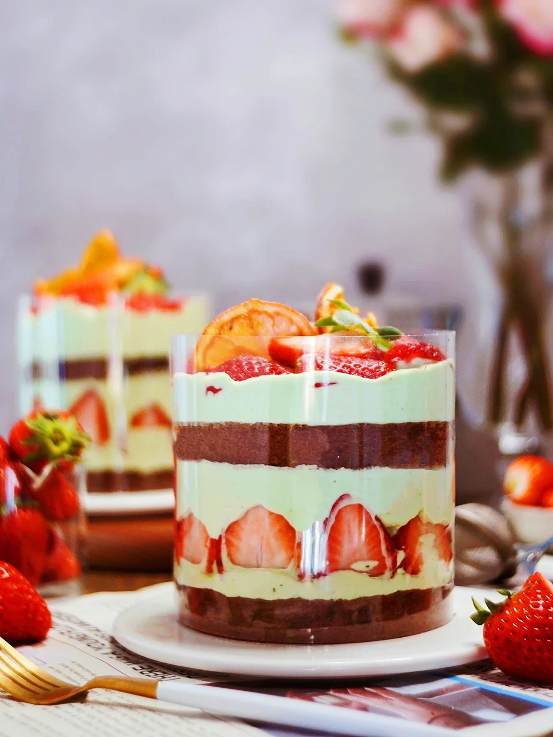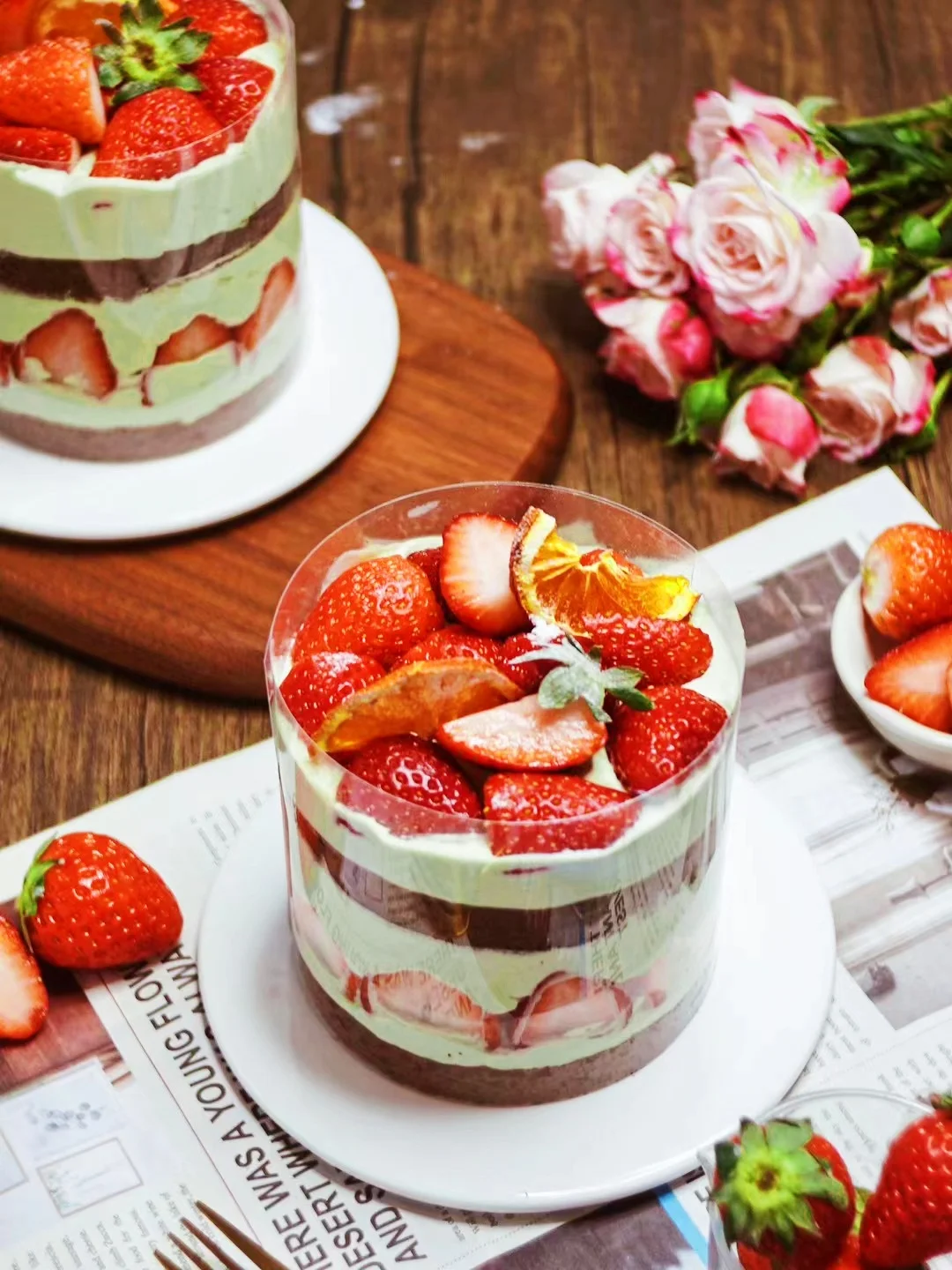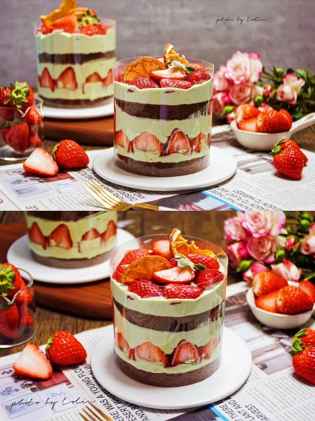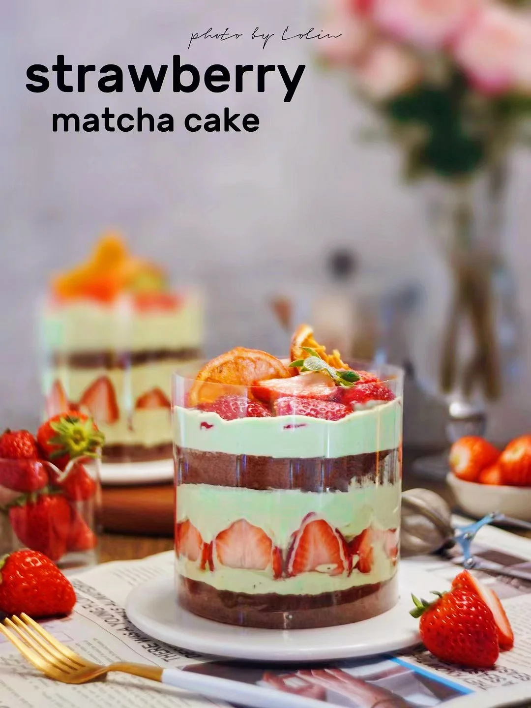 可可蛋糕胚打底,放入香甜的草莓🍓再用抹茶粉调味🍃一口就能吃出3种风味🍁