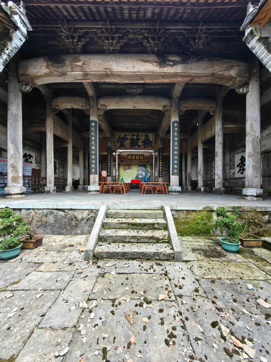 江西婺源严田村的朱氏宗祠(秩叙堂),藏着清代徽派建筑的精致密码。青砖八字门,水磨石墙面,虽经岁月打磨,堂前‘秩叙堂’匾额依旧苍劲——传当年竣工时,村里人竟以草鞋代笔书写,墨痕斑驳间,倒添了几分传奇。梁托斗拱的雕刻华美依旧,五凤门楼虽残,飞檐古韵仍在风中流转。这里是朱熹族人的‘紫阳世家’记忆,也是千年文脉凝固的诗行。
