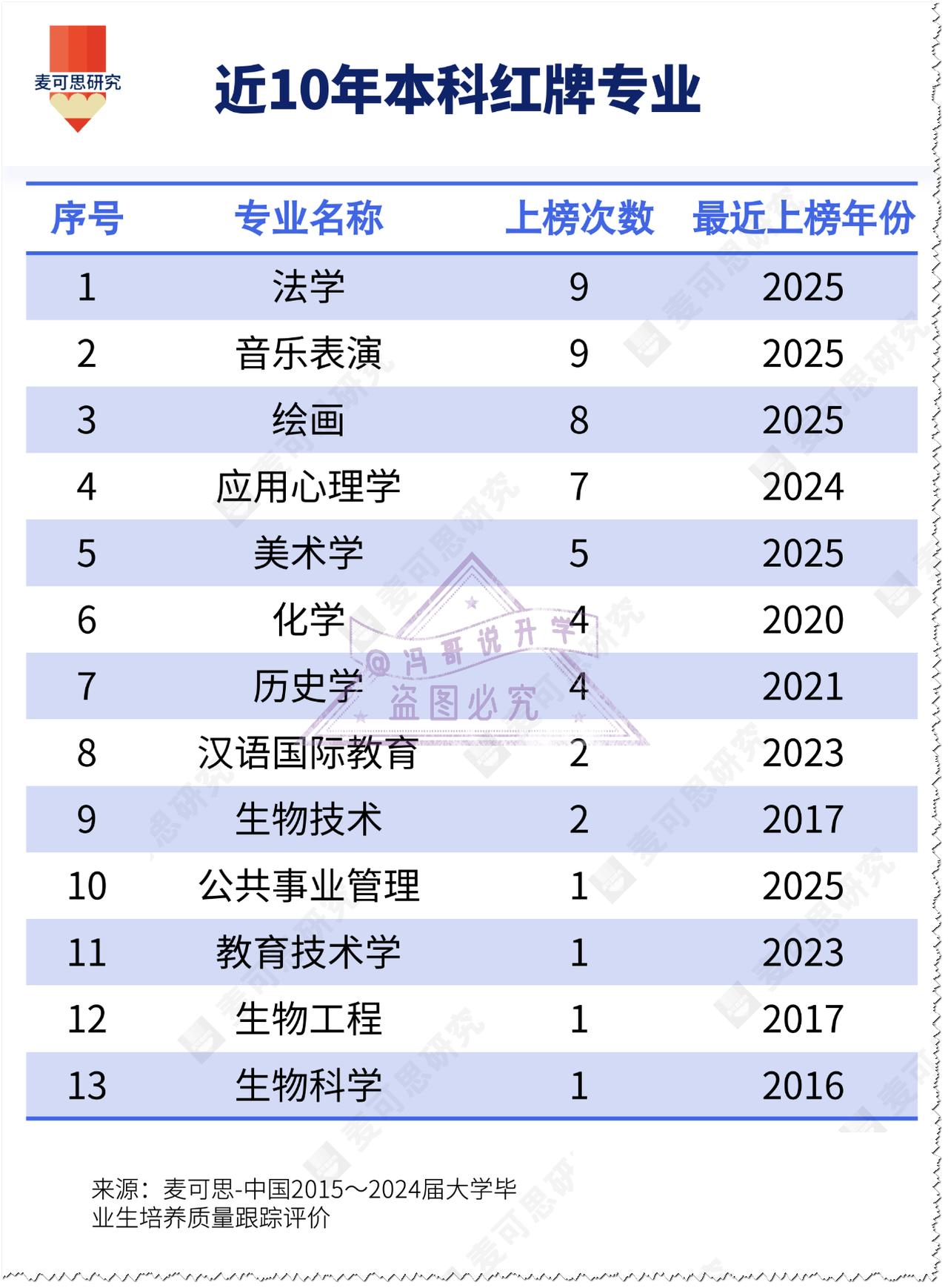 警惕!13 个本科专业被反复预警!法学 & 音乐表演 9 次上榜,你踩坑了吗? 家人们!近 10 年本科红牌专业名单炸了💥 13 个专业被反复预警,法学 & 音乐表演居然 9 次上榜,快自查有没有踩坑👇 ⚠️ 核心预警清单 ▪️ 13 个红牌专业:法学、音乐表演、绘画、应用心理学、美术学、化学、历史学、汉语国际教育、生物技术、公共事业管理、教育技术学、生物工程、生物科学 ▪️ 最危险 TOP2:法学 & 音乐表演(9 次亮红牌!全国层面就业落实率 / 薪资 / 满意度综合垫底) 💡 辩证看待红牌(划重点!) 红牌≠全踩雷! ✅ 部分高校红牌专业反而是香饽饽:比如顶尖法学院的法学(就业率 95%+)、央音 / 上音的音乐表演(对口率 100%) ❌ 绿牌专业也可能翻车:部分院校绿牌专业因培养脱节市场,反而就业难 你或身边人学过这些专业吗?就业咋样?评论区分享避坑经验,帮更多人绕开雷区👇 红牌专业 本科就业 高考志愿填报 法学专业 音乐表演 避坑指南