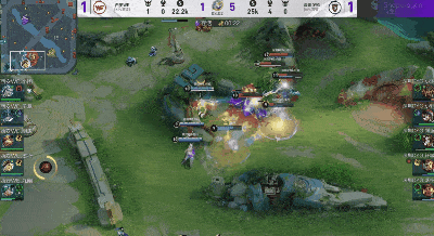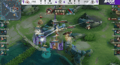 4分30秒,向鱼不知火舞一闪开团找到没有大招的司空震,拿下一血,随后DYG收下暴君