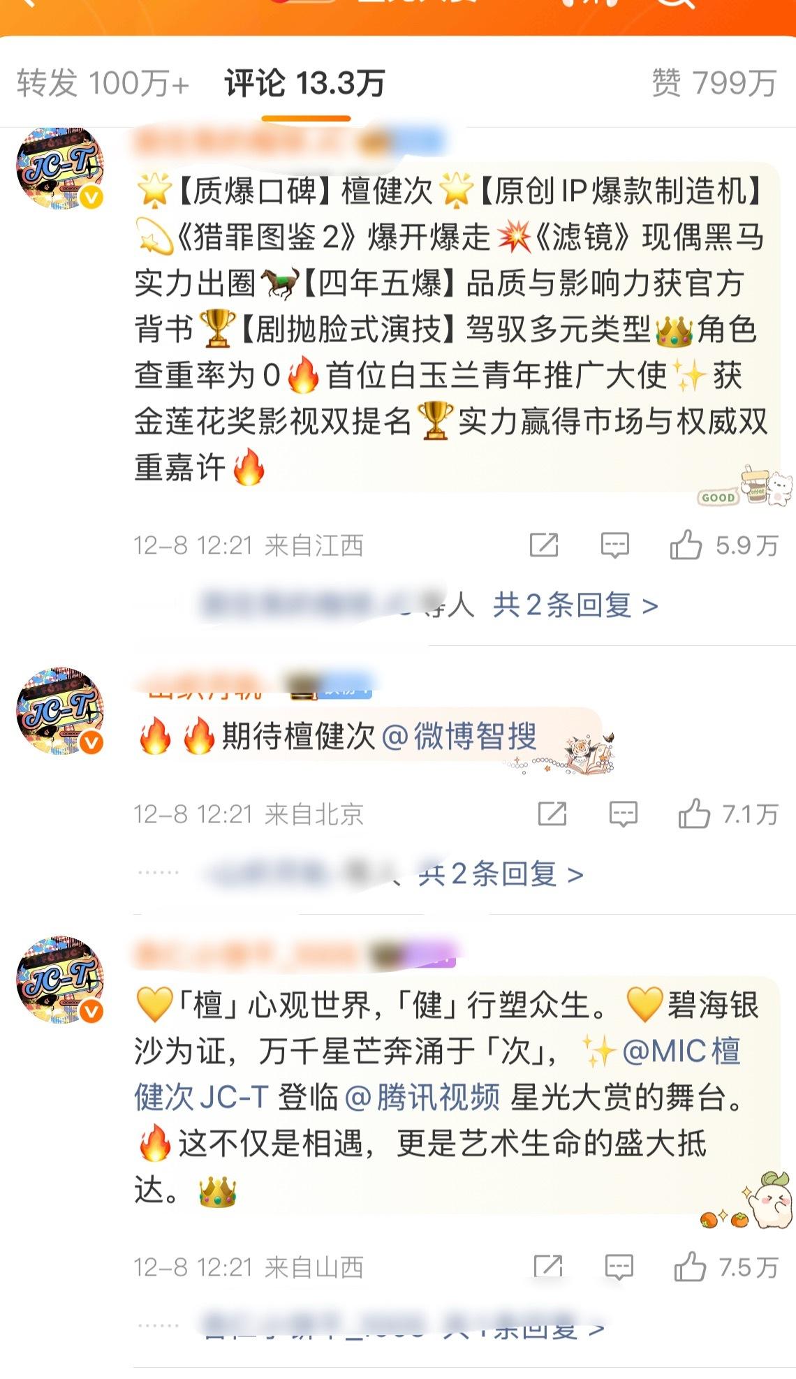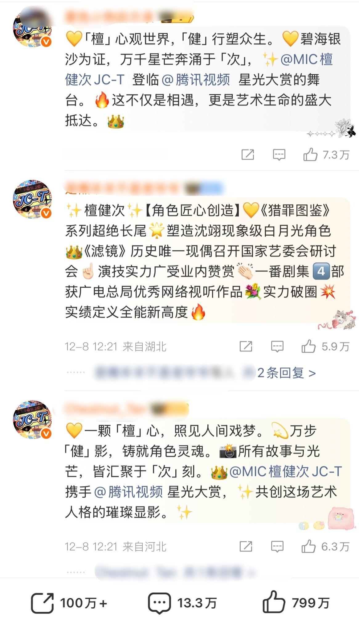 好热闹,檀健次家星光大赏第1️⃣控到10w了!