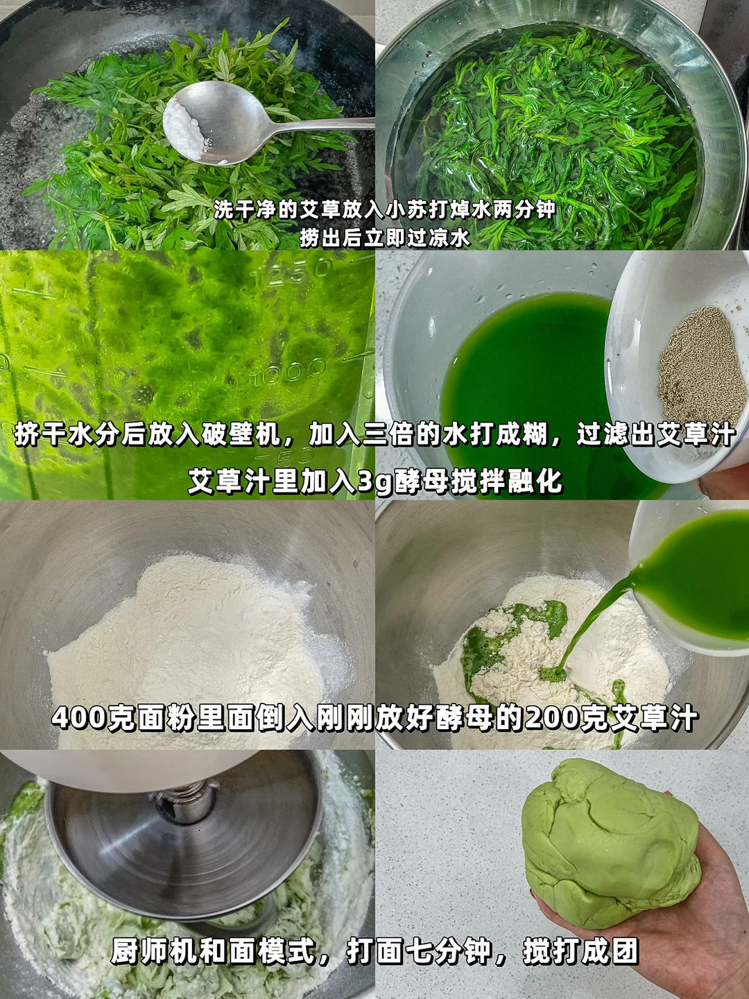 艾草、面粉、酵母(没有艾草就用青瓜皮)
