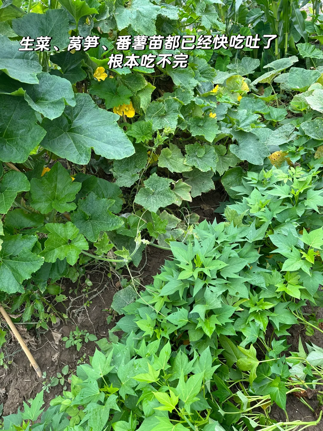 租地种菜后 你就会收获:芋头、花生、玉米、四季豆、豆角、红苋菜、空心菜、毛豆、南瓜、辣椒、茄子、贝贝南瓜、番薯苗、生菜、莴笋、节瓜…… 只可惜种的珍珠苦瓜全军覆没了
