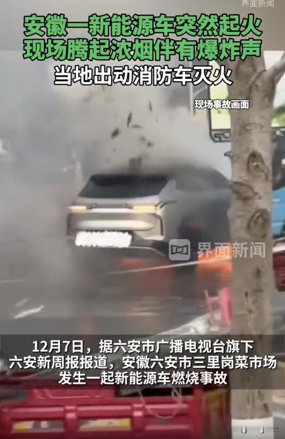 太惊险了!12月7日,安徽六安三里岗菜市场,一辆新能源车突然冒出浓烟,并从车辆底部喷出火焰,路上行人见状纷纷躲避,就在这时,燃烧的车辆突然又发生了爆炸,“嘭”的一声巨响,黑色的碎片四处飞溅,围观的人群发出一阵惊呼声,紧接着车辆燃起了熊熊大火,火势凶猛。 这电车的着火速度真是太快了,从开始发现冒烟到出现火苗,再到最后变成熊熊大火,也就是几分钟的时间,而且中间还发生了剧烈的爆炸,假如要是行驶中发生这样的事故,那驾乘人员真的很难逃脱。 电动汽车出现这么长时间以来,一直是优劣参半,优势就是用车成本低,而且车辆配置更丰富,更加智能化。但是缺点也同样不少,续航问题,电池安全问题等,尤其是电池起火问题,这可是关系到生命安全的大事。 电动汽车要跑赢市场,先要通过安全这一关,先得守住“不起火”的安全底线,否则再高的配置,再快的速度,也抵不过一场事故的冲击!