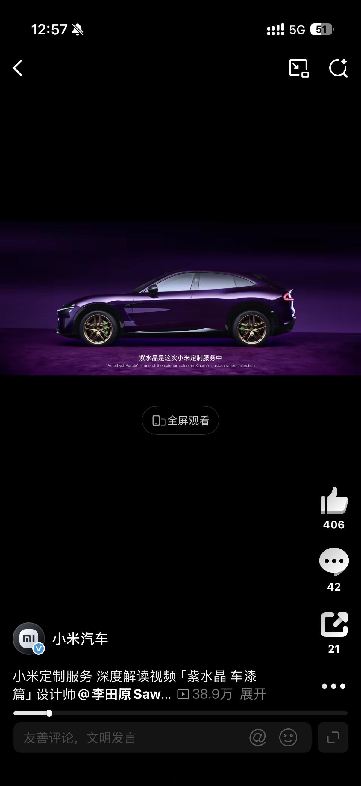 卧槽我有点想看小米的这个紫水晶真车,看图感觉质感就非常不错,现在小米汽车定制服务开启交付,不知道有没有机会再北京的路上看到小米汽车现在不仅产品高端,服务也非常高端,汽车定制服务真的把档次拉高了不止一个不少,而且也有很多高端用户是真的认可小米汽车,不少车主以前都是开保时捷,小米也好起来了