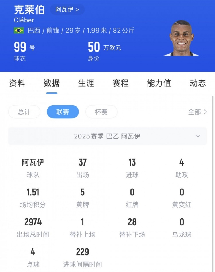 苗原在个人微博写道:近云南玉昆动作最多,自由身中锋克莱伯已经谈完,目前正在安排恩里克的离队事宜。克莱伯29岁,大中锋,从巴西底层杀上来的选手,这赛季效力于中游球队阿瓦伊,巴乙37场13球4助,联赛银靴。