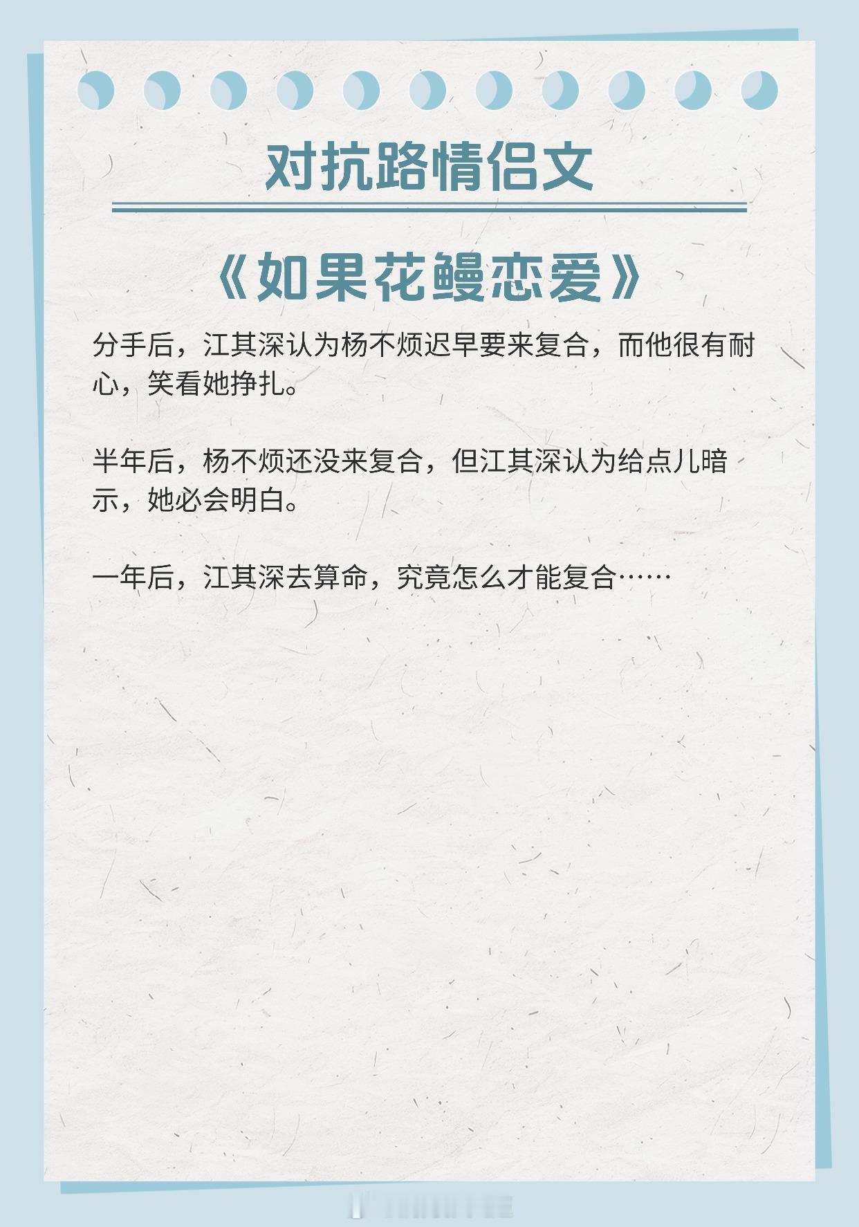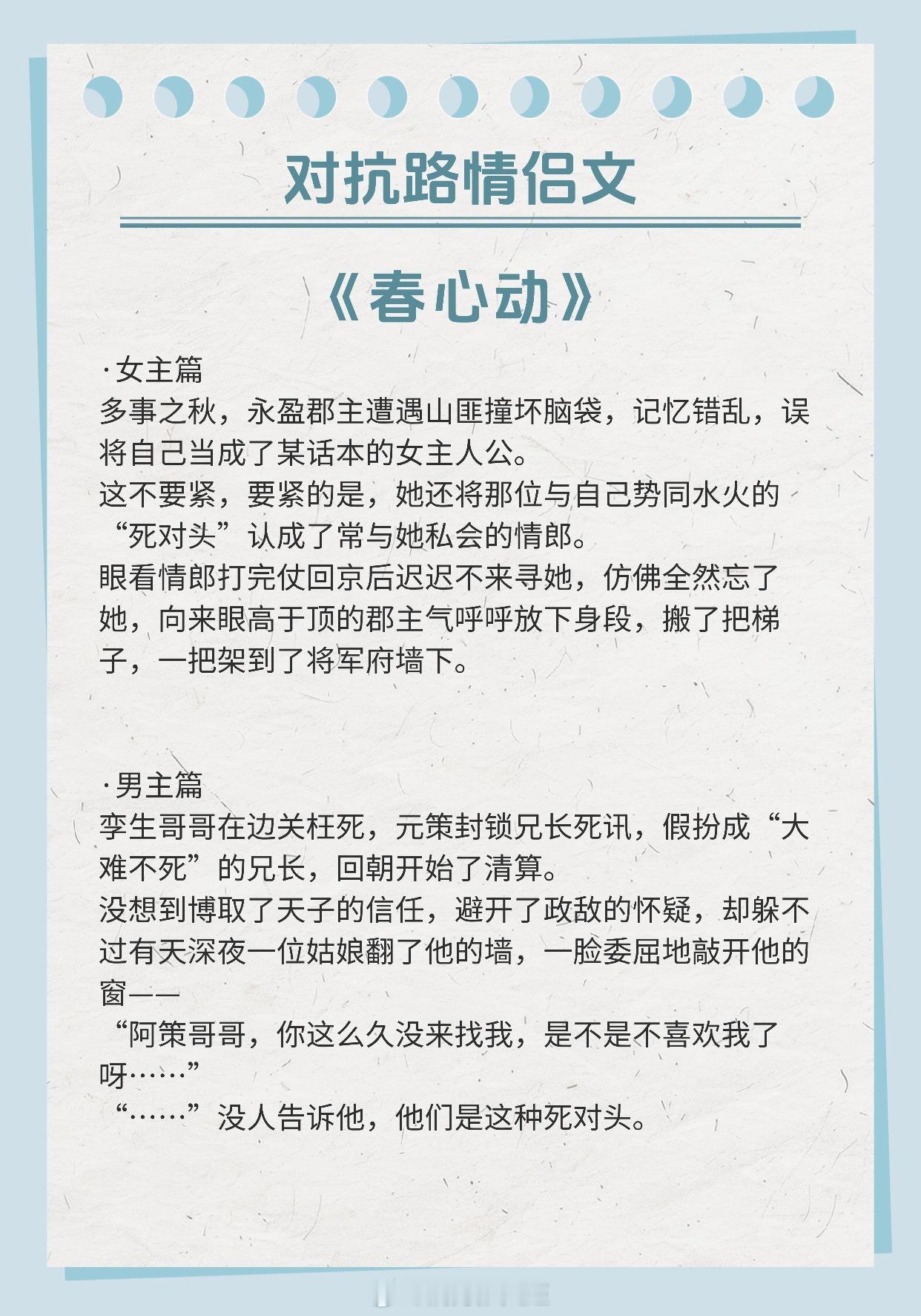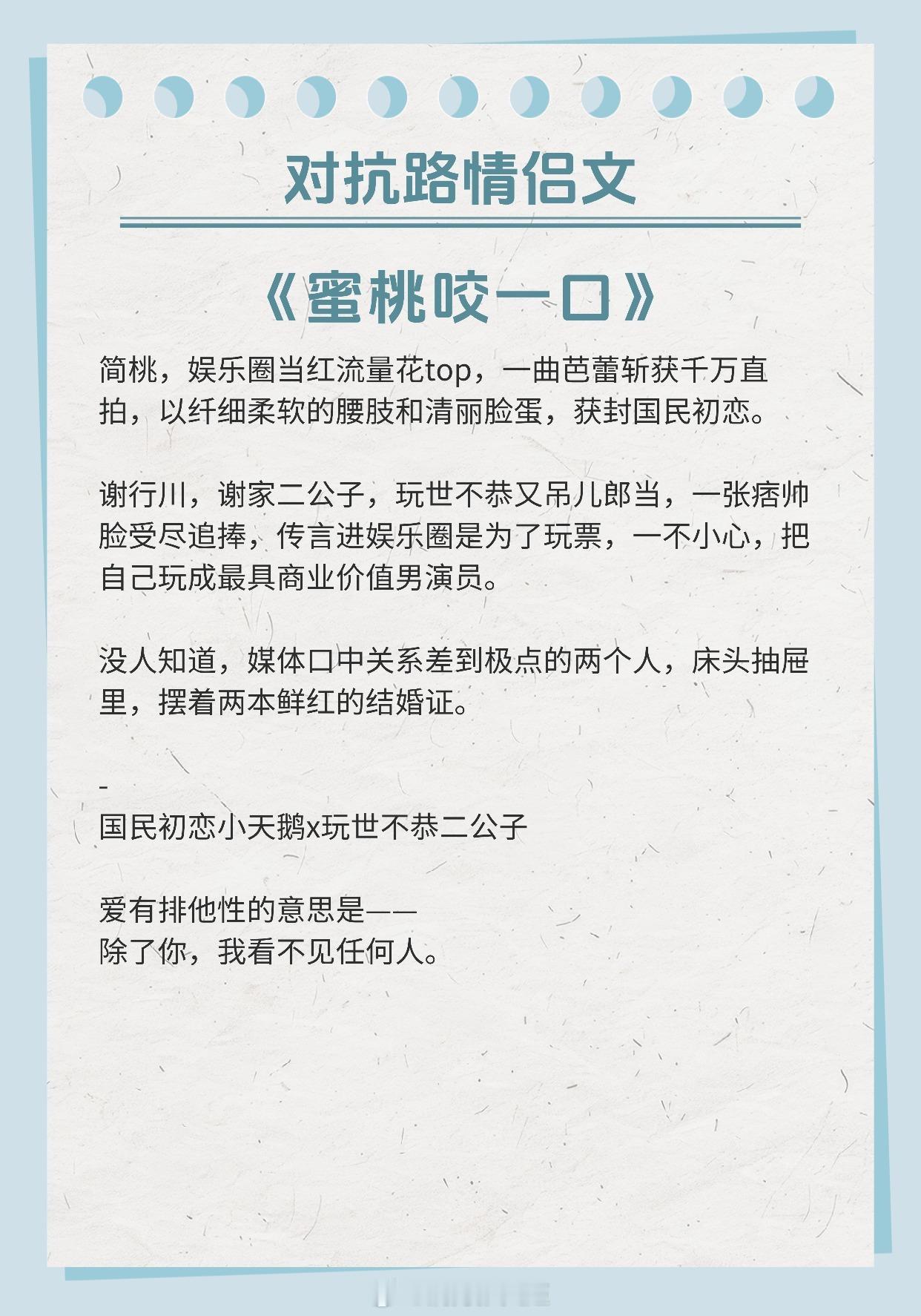 【对抗路情侣文】你是我师出无名的春天。《窃蓝》作者:明开夜合《风轻浪细》作者:瑞曲有银票《蜜桃咬一口》作者:鹿灵《跟我结婚的那个骗子》作者:淳牙《如果花鳗恋爱》作者:刘汽水《春心动》作者:顾了知《与宿敌成婚后》作者:淞子七《雪焚长安》作者:衔香《倾虹》作者:唯酒推文言情小说推荐推文