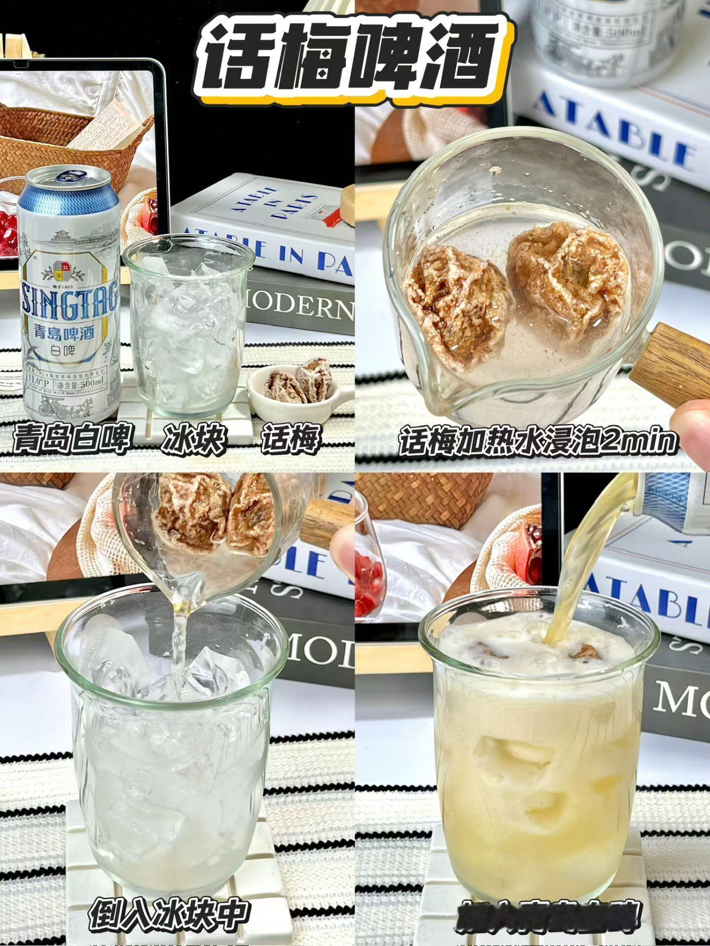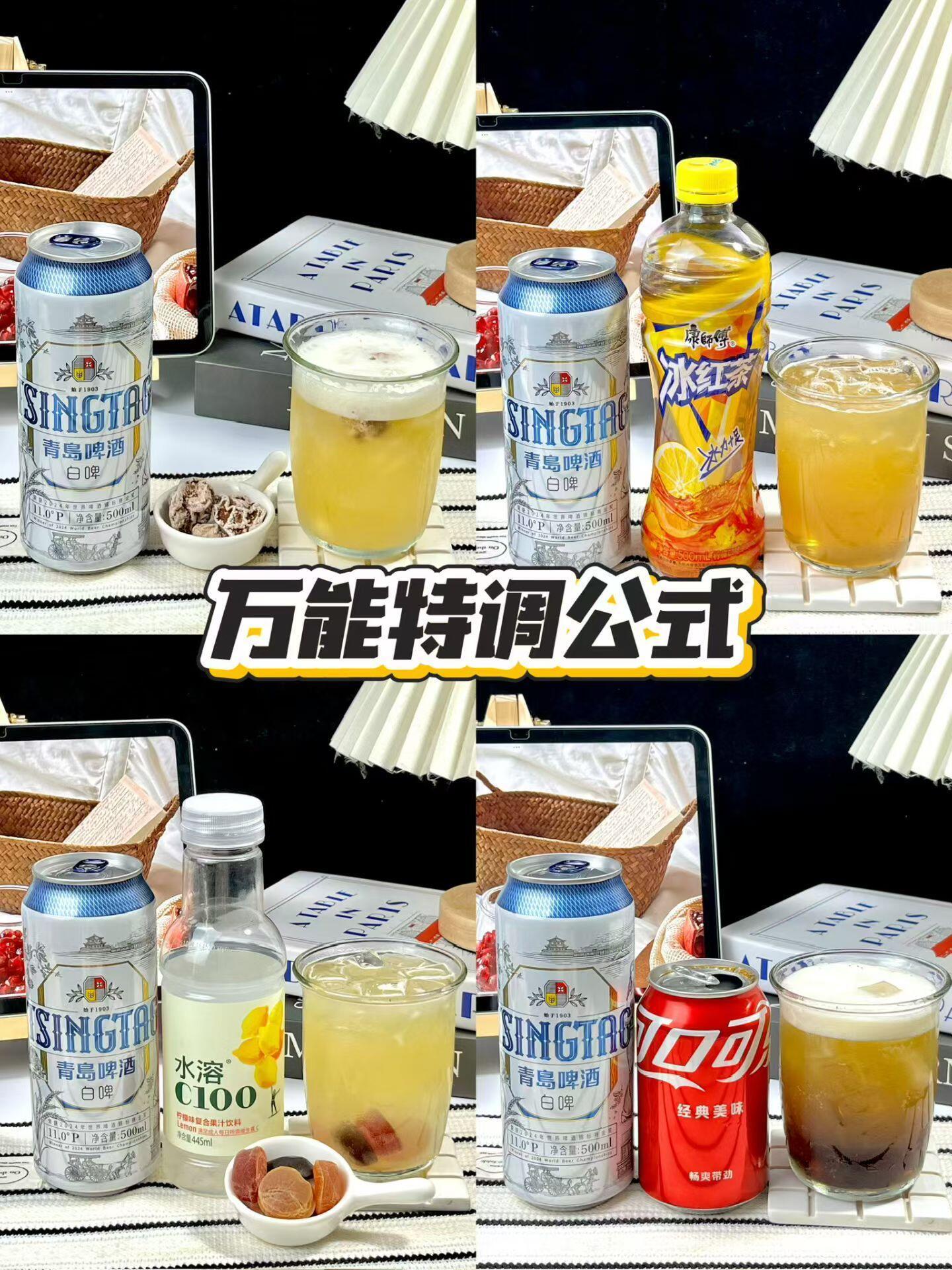 万能特调公式!这几杯真的没有对手…刷到好多啤酒特调,忍不住试了试,分享四款懒人配方,包学包会~🍺【话梅啤酒】话梅的咸甜中和了啤酒的微苦,超级清爽!适合配夜宵~🍺【冰红茶啤酒】杯里一半啤酒一半冰红茶,搅一搅像带气泡的柠檬茶!🍋🟩麦香+茶香绝配啊啊啊!🍺【酸沙软糖+水溶C+啤酒】软糖垫底加水溶C半杯,能尝到软糖融化后爆汁的口感!酸酸甜甜带气泡,少女心爆棚💖🍺【可乐啤酒】快乐水+啤酒双倍快乐!🫧气泡感超足,喝不腻!没试过的真的可以试一试!而且我要夸夸这个青岛啤酒白啤🍻全麦酿造的!麦香超浓~混搭后也不会盖住果香!就很适合做特调!温馨提示🔔✅记得加冰!加冰!加冰!🧊✅未成年不许喝酒哦