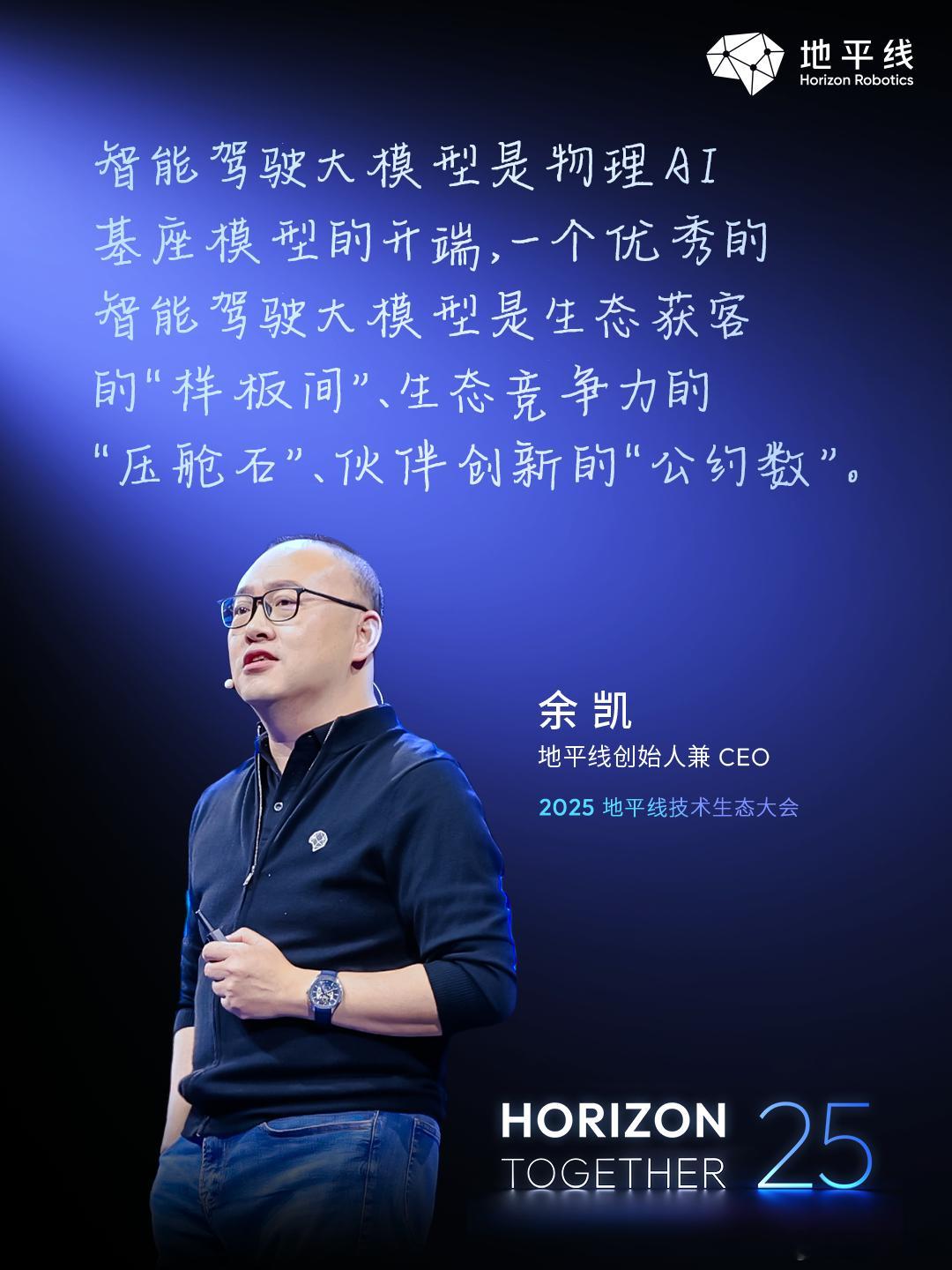 今天在2025地平线技术生态大会上,创始人兼CEO余凯系统性地分享了公司的技术布