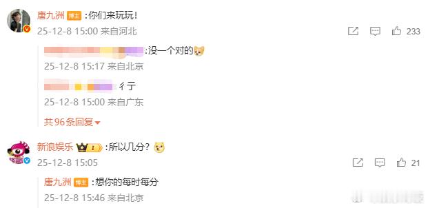 唐九洲真的尽力了 被这个笑晕,参加2025娱乐圈吃瓜年终总结答题输得明明白白,结果被追问分数时直接甩出 “想你的每时每分”,土味情话满分!