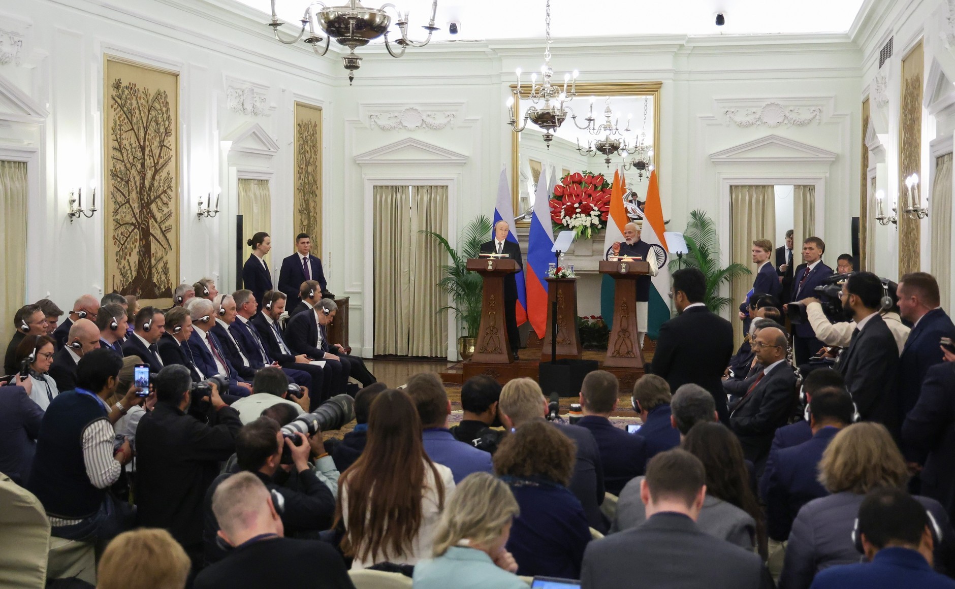 瓦洛佳小朋友 俄罗斯总统与印度总理对媒体发表声明俄印谈判结束后,弗拉基米尔·普京和印度总理纳伦德拉·莫迪向媒体代表发表了声明。声明开始前举行了签署文件的交换仪式。2025年12月5日 12:00新德里
