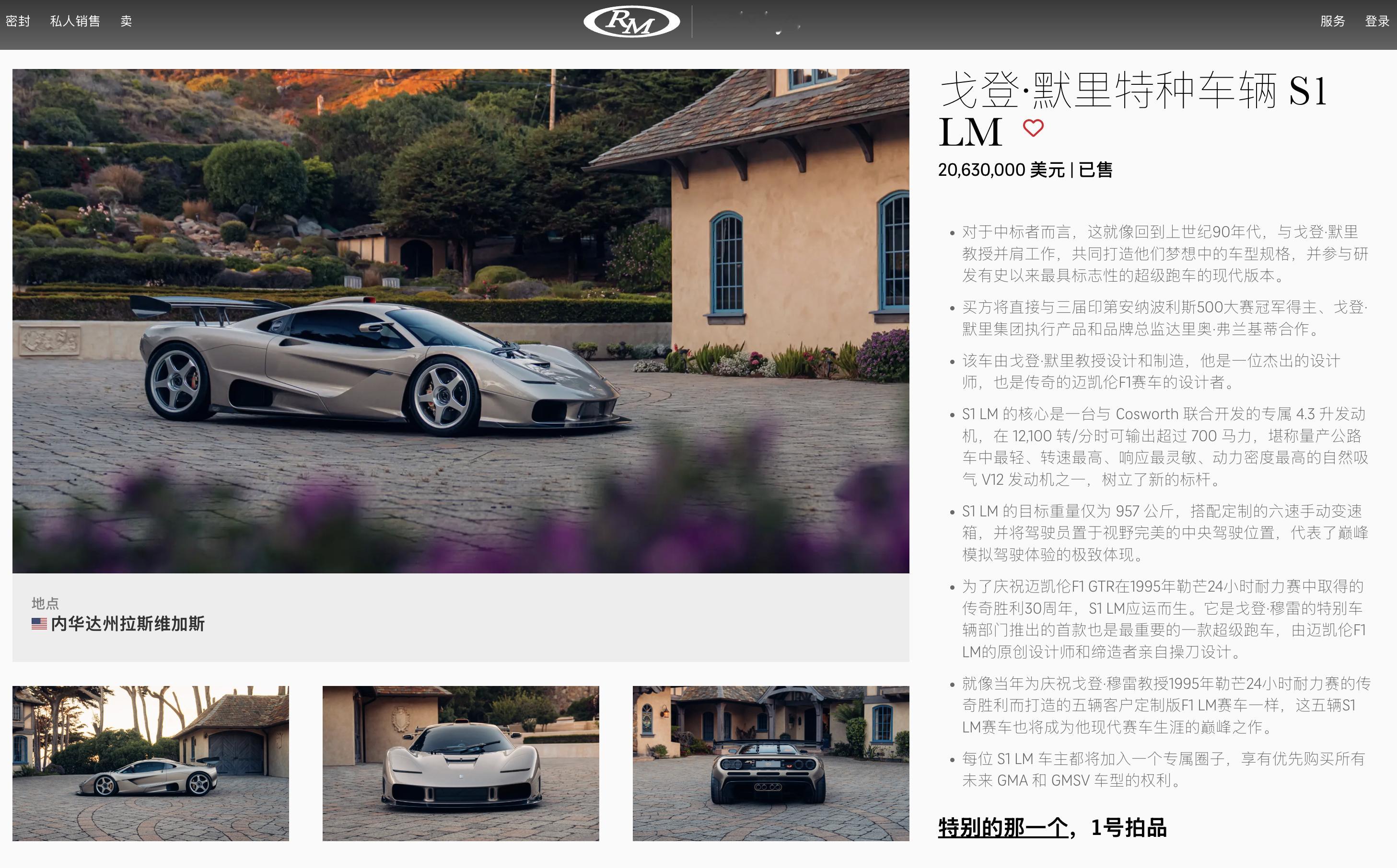 这是我今年见过最离谱的拍卖GMA的S1 LM。新车以2063万美元拍卖成交,由迈凯轮F1的设计师Gordon Murray开发这个价格在当下的市场可以说是逆天了。难道迈凯轮F1的地位真的如此崇高,连他设计师几十年后的创业作品也能拍出如此的天价嚒....我不懂了