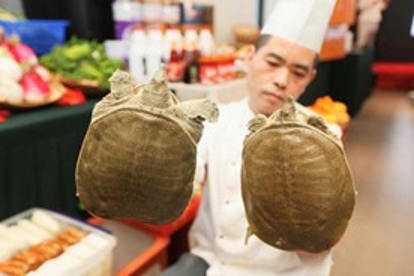 杭帮菜是杭州餐饮的灵魂,更是推动消费升级、助力产业发展的“金名片”。在食材展示交流环节,汇聚了杭州和衢州两地丰富多样的优质食材。浙江厨鑫食品有限公司带来了山野蕨菜、糯米山药、南麂岛黄鱼和各种酱货。阿峰农副产品配送(杭州)有限公司带来了清水鱼、将军鱼和各种时令土菜、山野干货。开化县唐高家庭农场带来了六年以上清水中华鳖。“通过展示交流,我们希望能够增进两地餐饮从业者对彼此食材的了解与认识,为今后更多创新菜品的研发提供灵感和可能。”杭州衢州商会副会长、宴三衢品牌创始人郑官华表示。