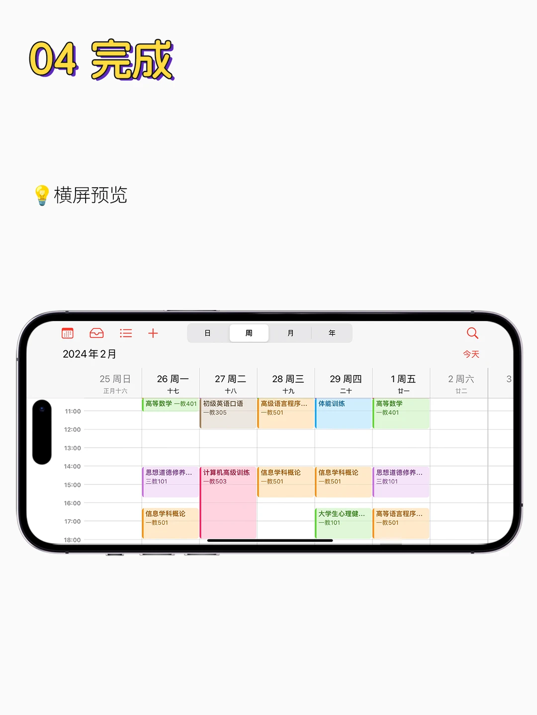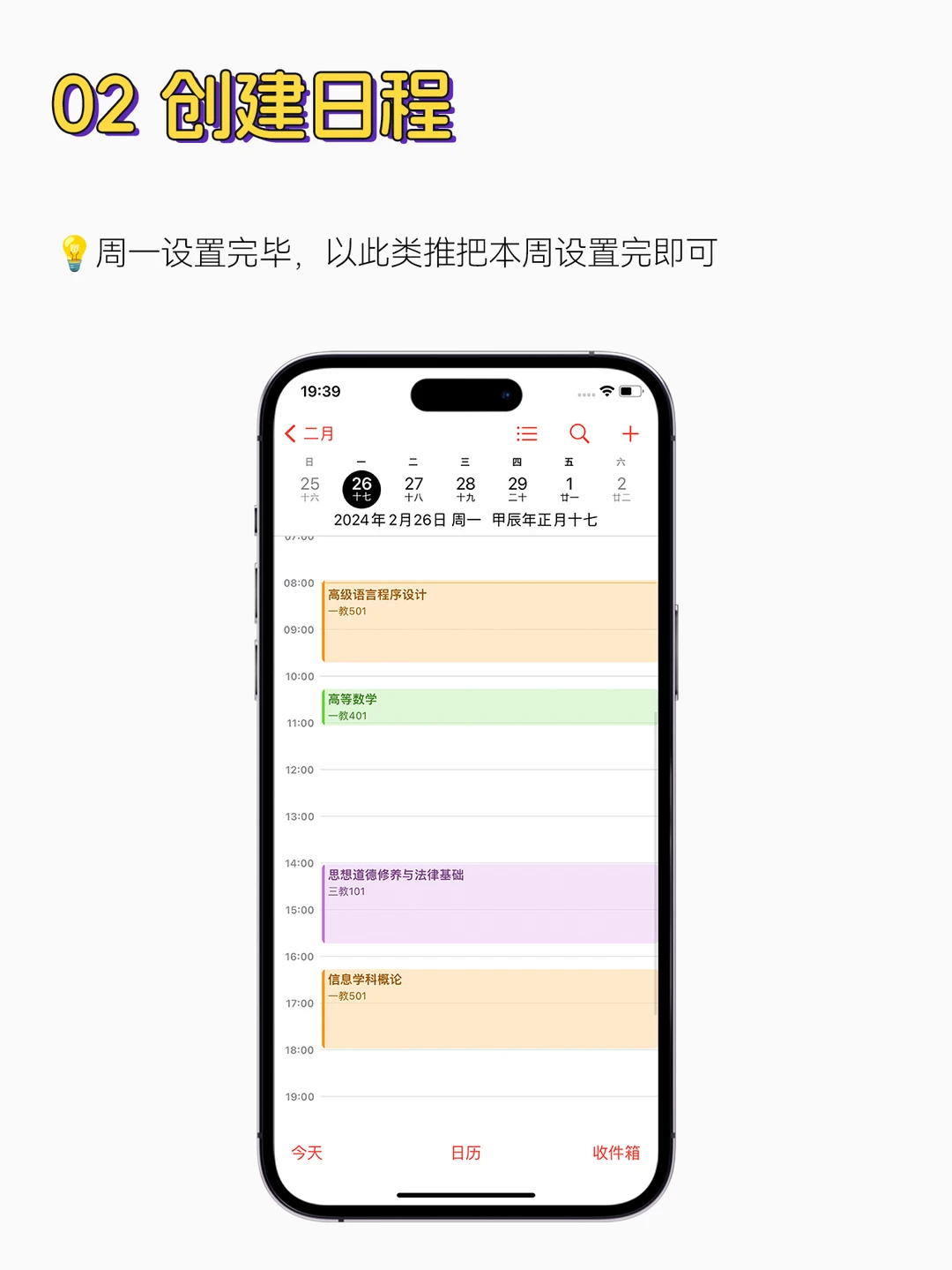 ⚠️如果你用iPhone,应该试试苹果自带日历做课程表,只要5分钟就可以整理好,还带提醒功能,以后再也不担心迟到啦!