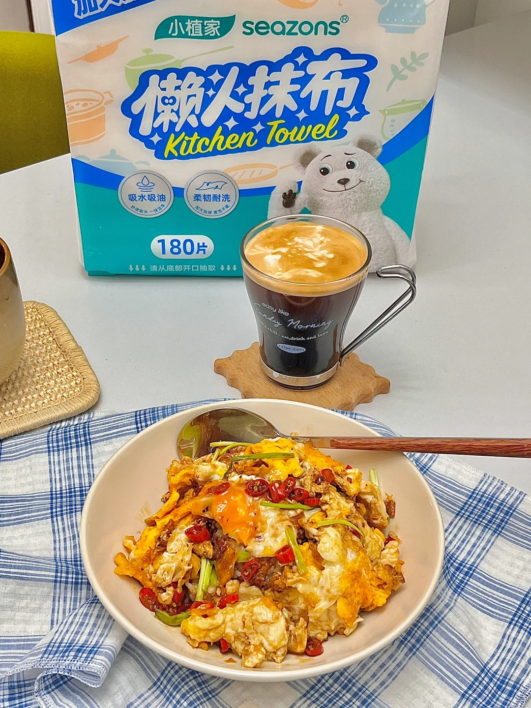 太爱自己做的减脂餐啦,看着平平无奇的醋炒鸡蛋,却一口沦陷,整个饭张力拉满,拌饭嘎嘎香,每一口都酸辣开胃,巨巨巨好吃~ 食材🥬:鸡蛋 小米辣 葱段 做法在图上⬆️简单美味 快去试试吧~ 作为每天都要解锁新菜谱的美食控,厨房清洁小帮手必须安排到位~小植家壁挂式懒人抹布,太方便了,挂在墙上不占地方,一擦一抹油污都带走,180片家庭装,可以用好久,特适合经常做饭的宝子,加大加厚的无纺布,韧性好湿水不破可以重复使用🔁。 现在厨房台面随时保持亮堂堂~边做饭边顺手擦,清洁效率翻倍!