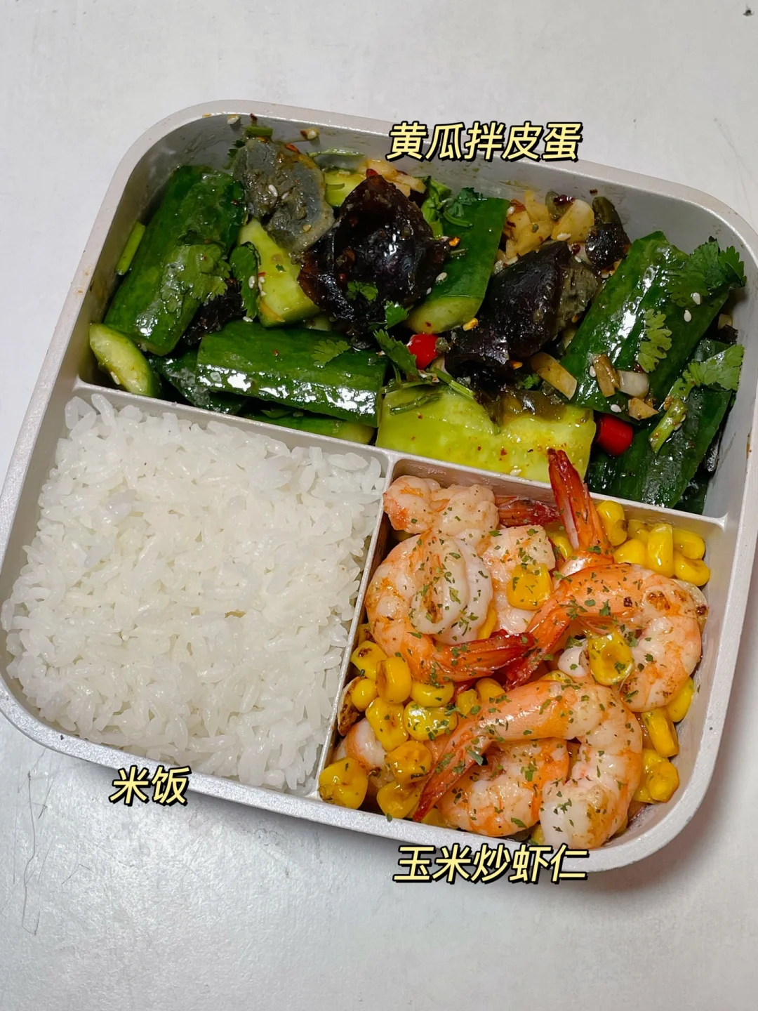 📍米饭+玉米炒虾仁+黄瓜拌皮蛋