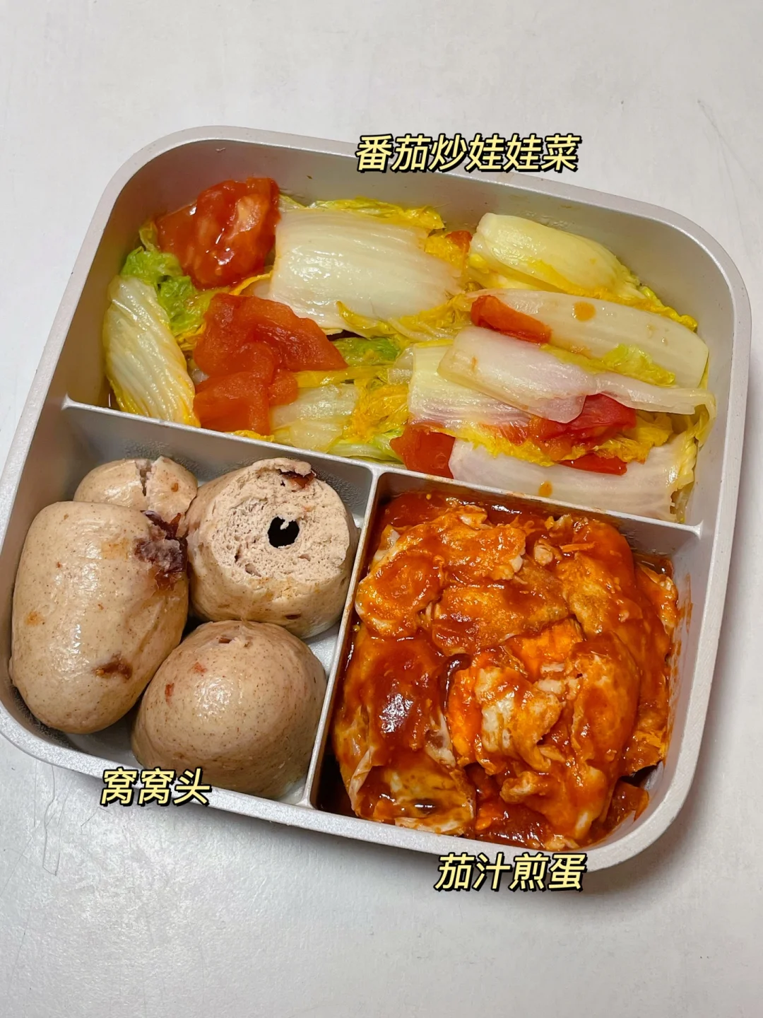 📍窝窝头+茄汁煎蛋+番茄炒娃娃菜