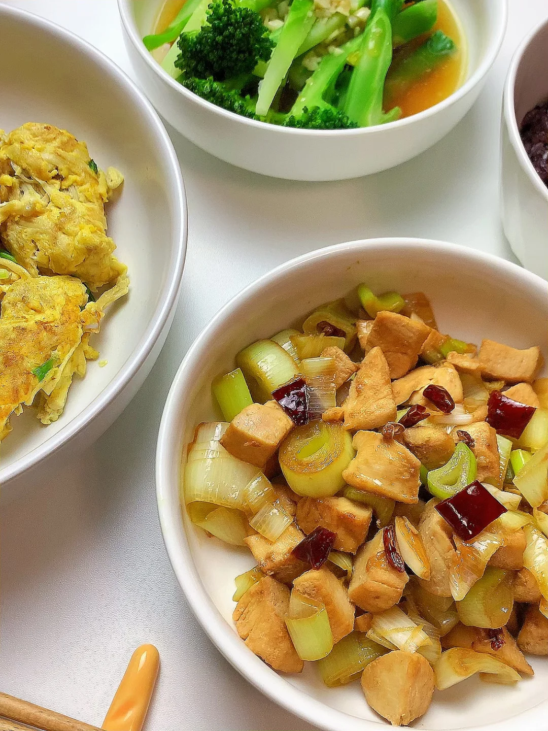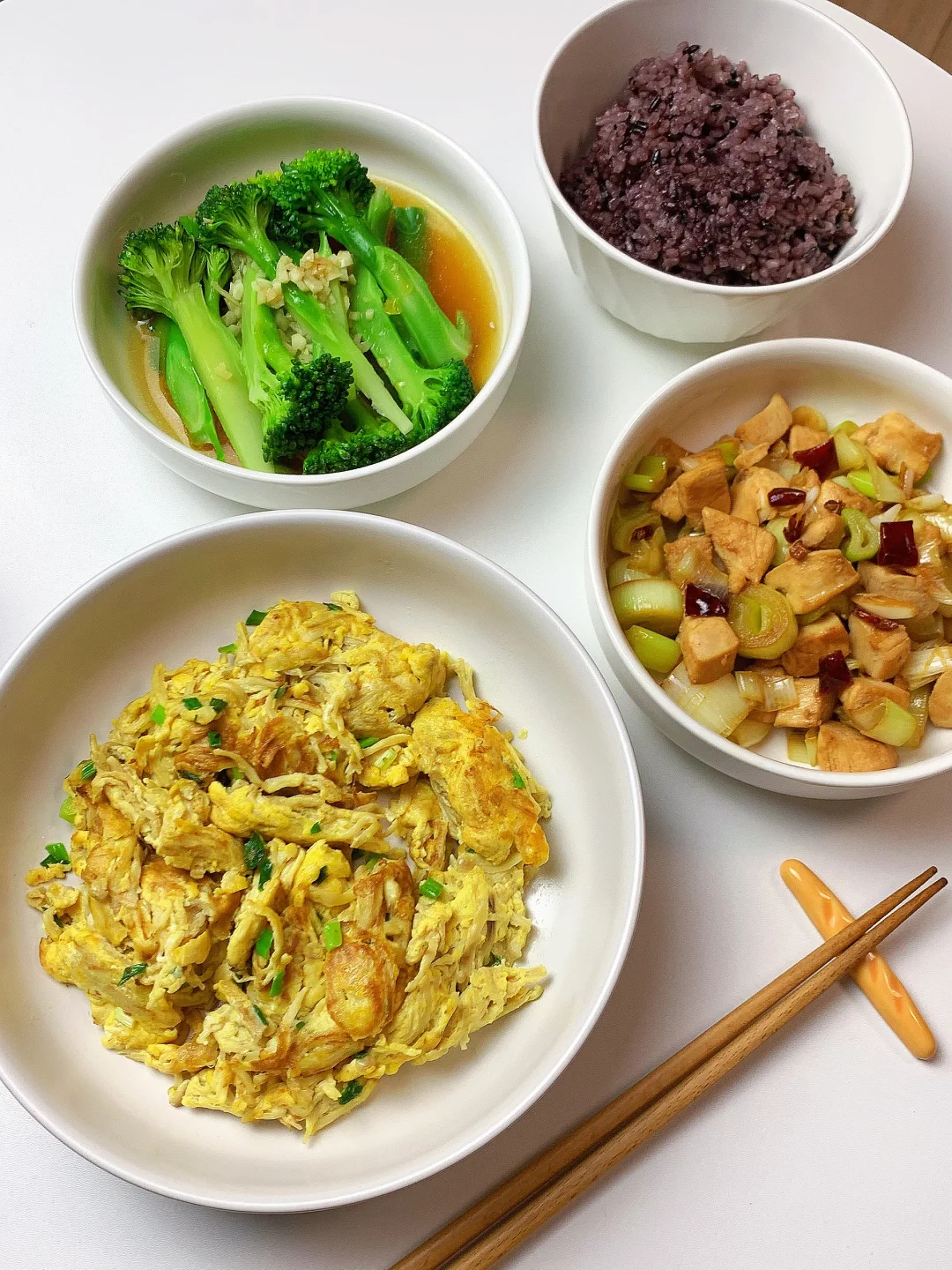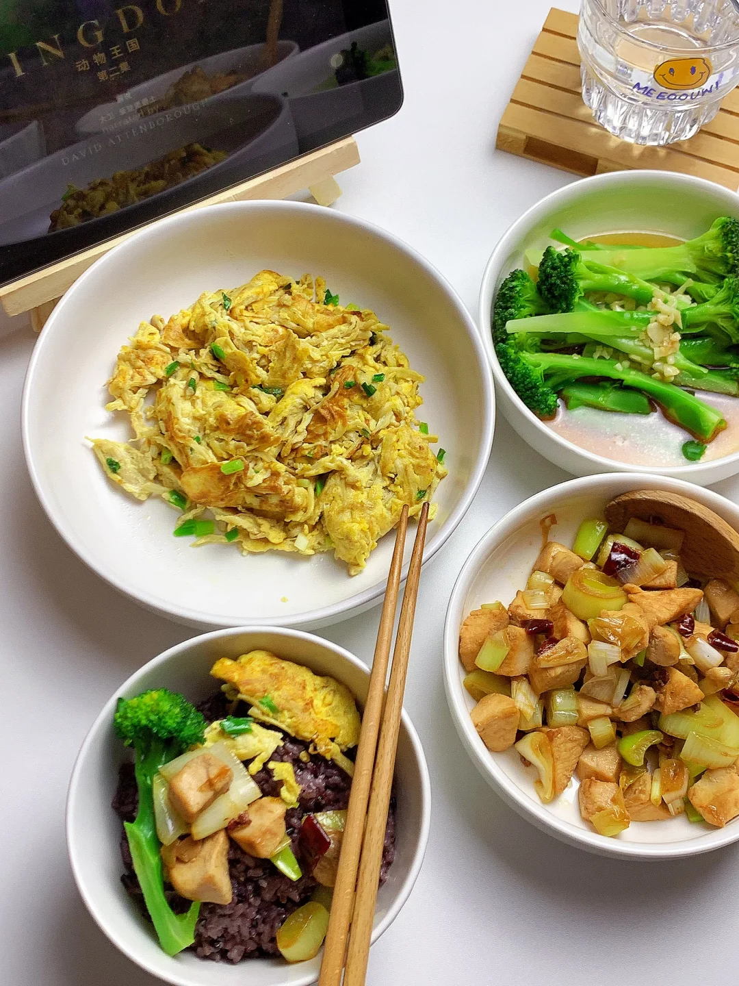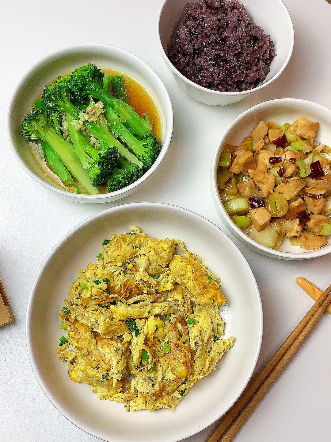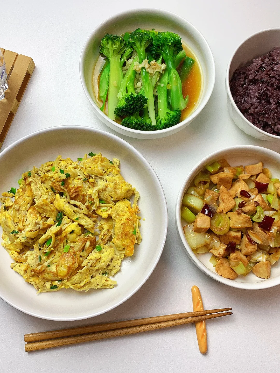 👩🏻🍳👩🏻🍳分享今日菜单 1️⃣金针菇炒鸡蛋 2️⃣蚝油西兰花🥦 3️⃣大葱炒鸡丁 主食:杂粮米饭🍚 ……………………………………………………………………………… 🛒食材清单: 西兰花🥦 | 鸡蛋 | 金针菇 | 大葱 | 鸡胸肉 📝早八打工人的一日三餐,拒绝外卖[偷笑R],坚持做饭的又一天,吃简单干净的饭菜,周末在家也要好好吃饭呀[派对R]~ [打卡R][开箱R][购物车R][彩虹R][庆祝R][烟花R] ₍˄·͈༝·͈˄*₎◞ ̑̑