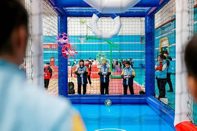 机器人数据风暴项目区,小选手指尖在操控面板上翻飞,指令下达的瞬间,机器人即刻启动,转身、巡线、数据采集一气呵成;无人机赛区内,机身轻盈穿梭,悬停、疾转、规避障碍,在空中划出灵动弧线;机器人足球竞技现场更是气氛热烈,红、蓝两队机械球员你追我赶,每一次精准抢断、每一次果断射门,都让选手们不自觉地绷紧身体,目光紧紧追随……