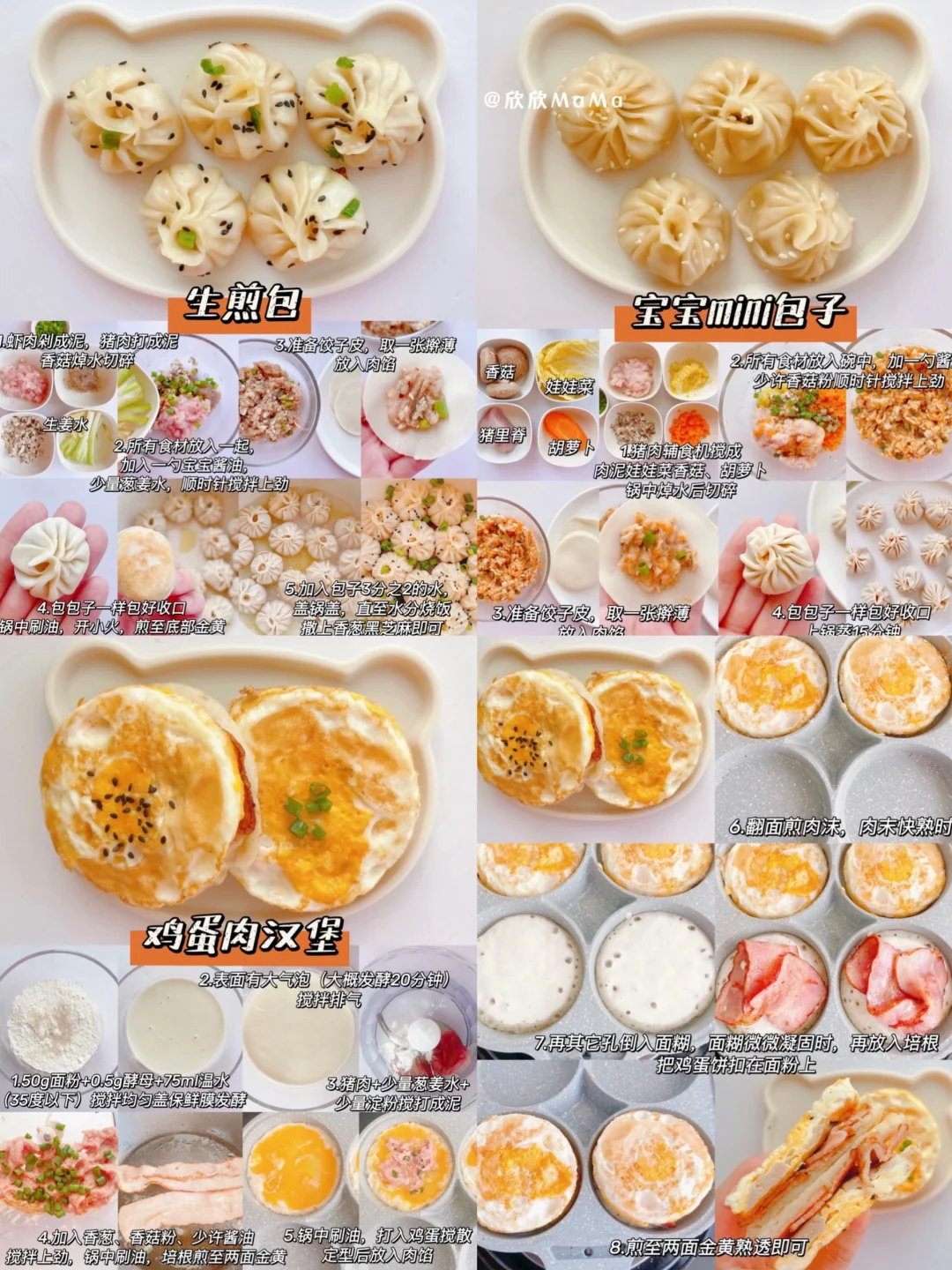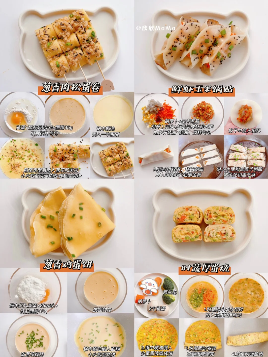 今天分享12款敲好吃的营养早餐,做法快手, 搭配米糊,牛奶就是健康的一餐啦! 妈妈们安排起来呀! ✅早餐鸡蛋饼 ✅葱香肉饼蛋卷 ✅鲜虾玉米锅贴 ✅鲜虾玉米锅贴 ✅葱香鸡蛋饼 ✅时蔬厚蛋烧 ✅西葫芦鲜虾饼 ✅土豆丝鸡蛋饼 ✅胡萝卜土豆饼 ✅生煎包 ✅宝宝mini包子 ✅鸡蛋肉汉堡 🌟食材发小根据宝宝咀嚼能力来安排 🌟1岁以上宝宝可以加盐、酱油,一岁以下可以加点香菇粉、虾皮粉
