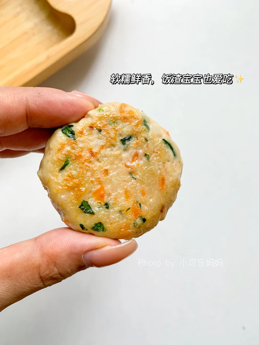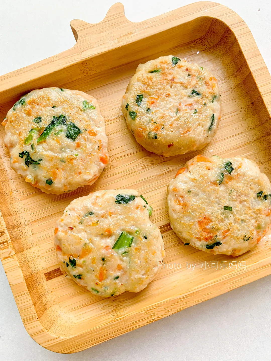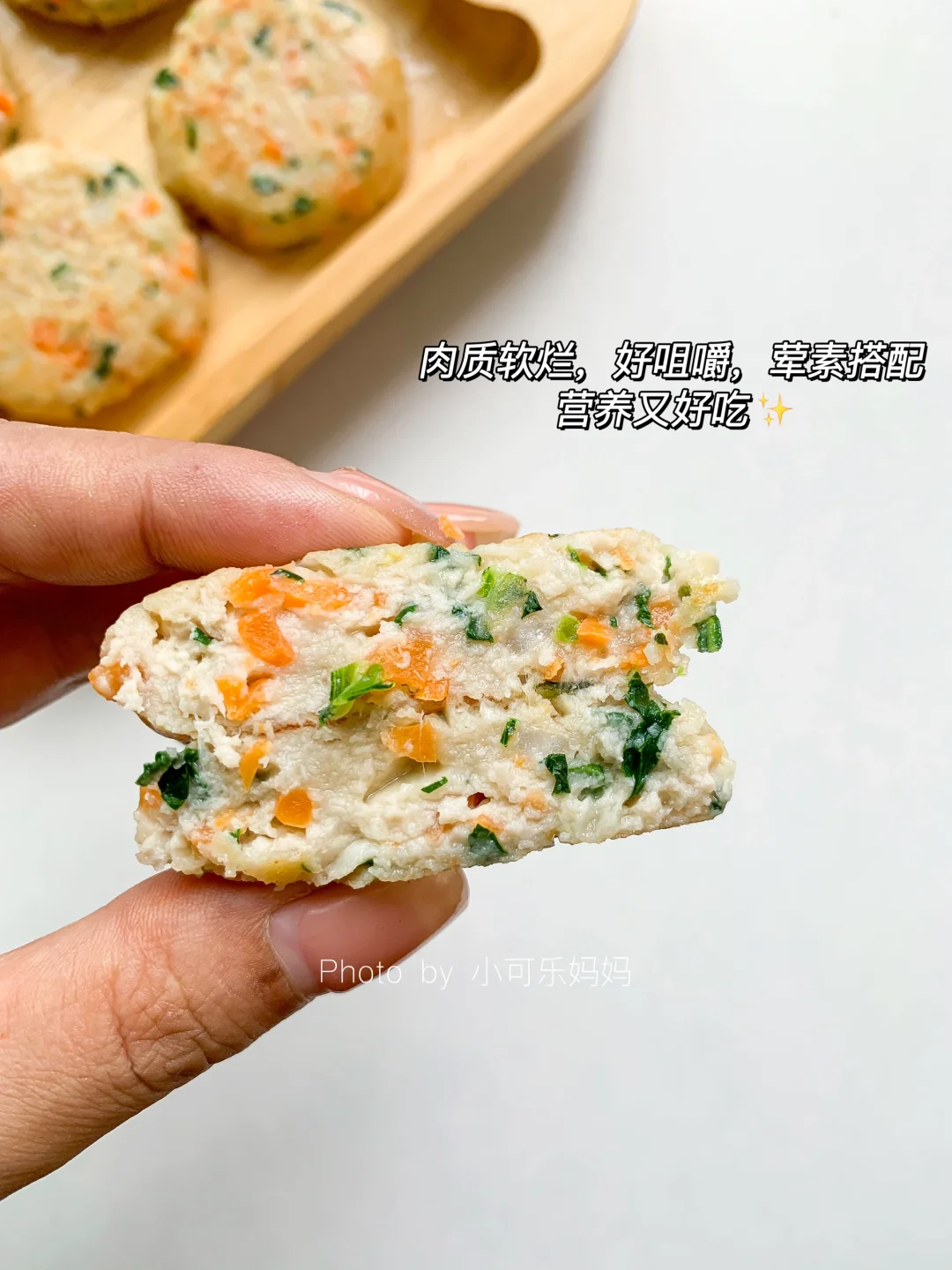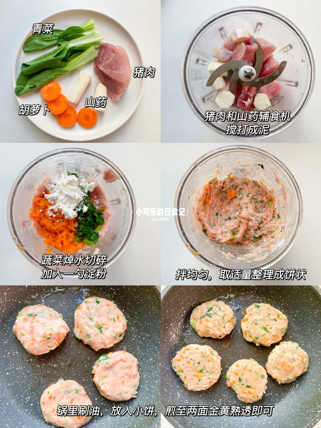 猪肉这样做软嫩鲜香,不干不柴,有菜有肉营养好吃。宝宝爱吃,一口接一口,做成手指食物还能锻炼宝宝咀嚼能力哦,没有鸡蛋,敏宝也可以吃,妈妈们快安排起来吧 - 食材:猪肉120g、山药、胡萝卜、青菜、玉米淀粉10g . 做法: 1⃣️山药和猪肉放入辅食机,搅打成泥,蔬菜焯水切碎 2⃣️全部食材混合一起,拌均匀,取适量肉泥整理成饼状 3⃣️锅里刷油,放入饼小火慢煎,煎至两面金黄熟透 - 一岁以上宝宝可加少许盐调味。 根据宝宝咀嚼能力整理饼的形状大小。