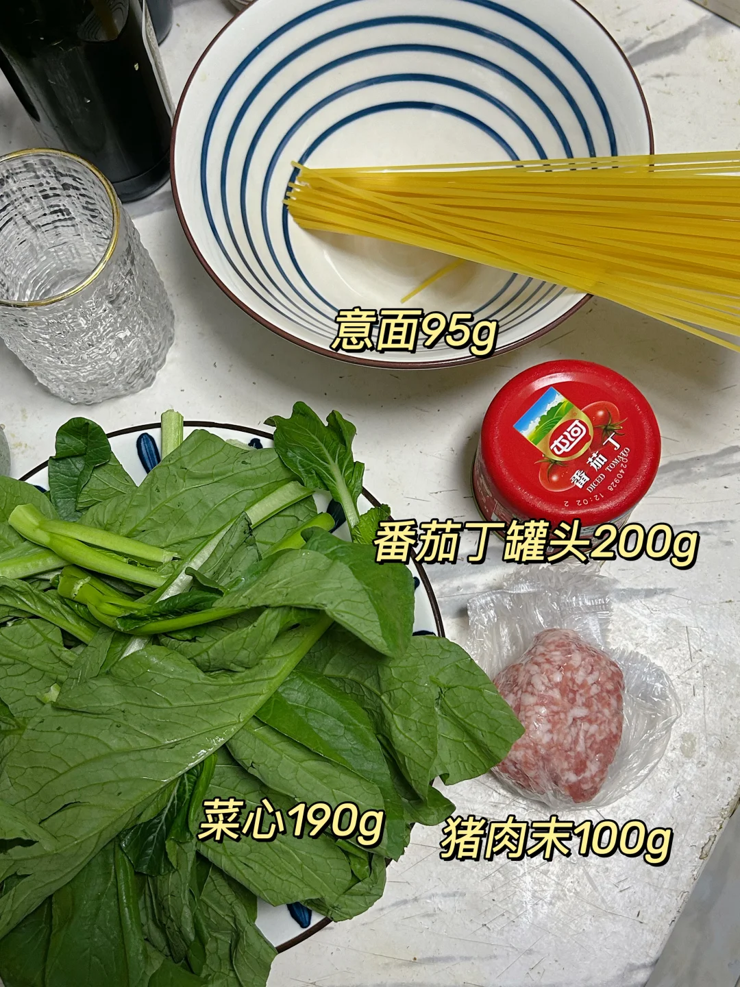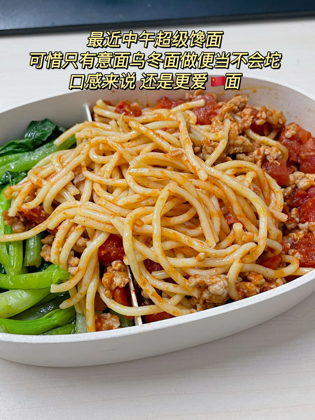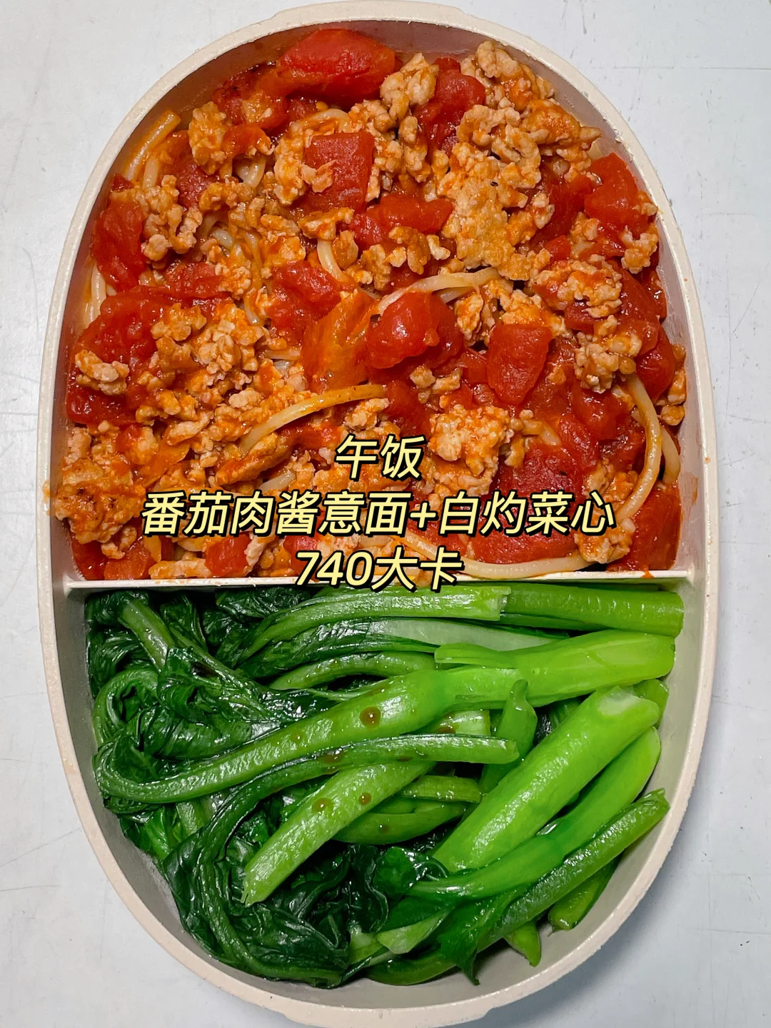 午 番茄肉酱意面+白灼菜心