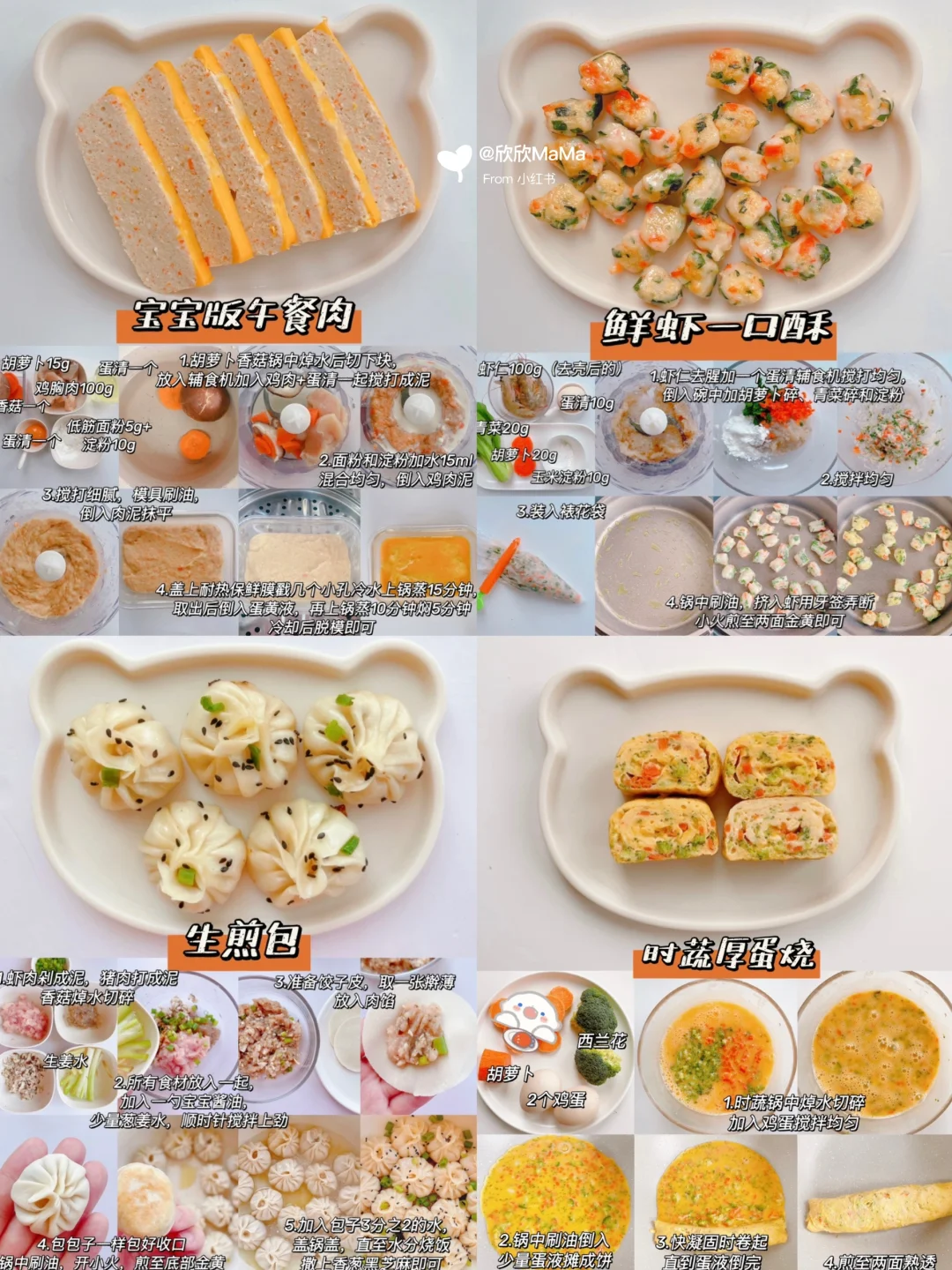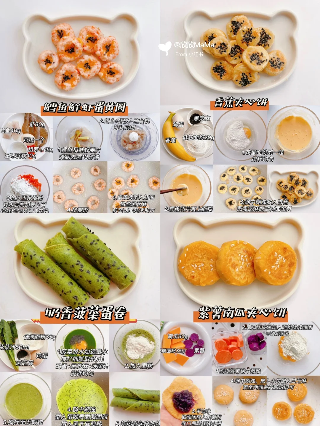 今天来分享一下平时给小欣欣做的24款简单易上手的手指食物~肉饼、馒头、早餐饼,有虾有肉~营养满满~每款味道都很不错,麻麻们赶紧和我一起做起来吧,总有一款合适你😋