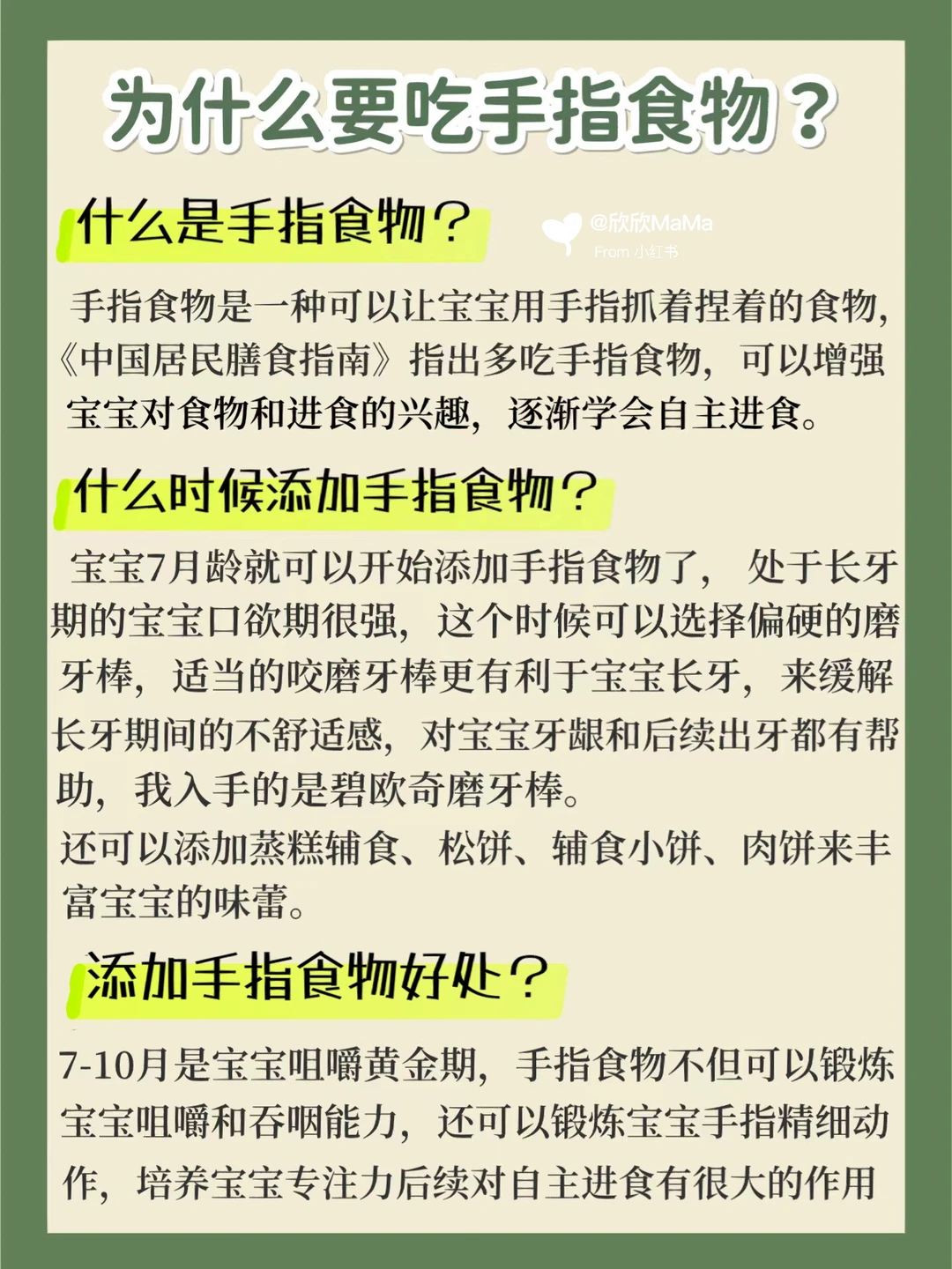 适量给宝宝添加手指食物好处多多,可以锻炼宝宝的手部精细运动,提升咀嚼能力,增强自主进食意识。