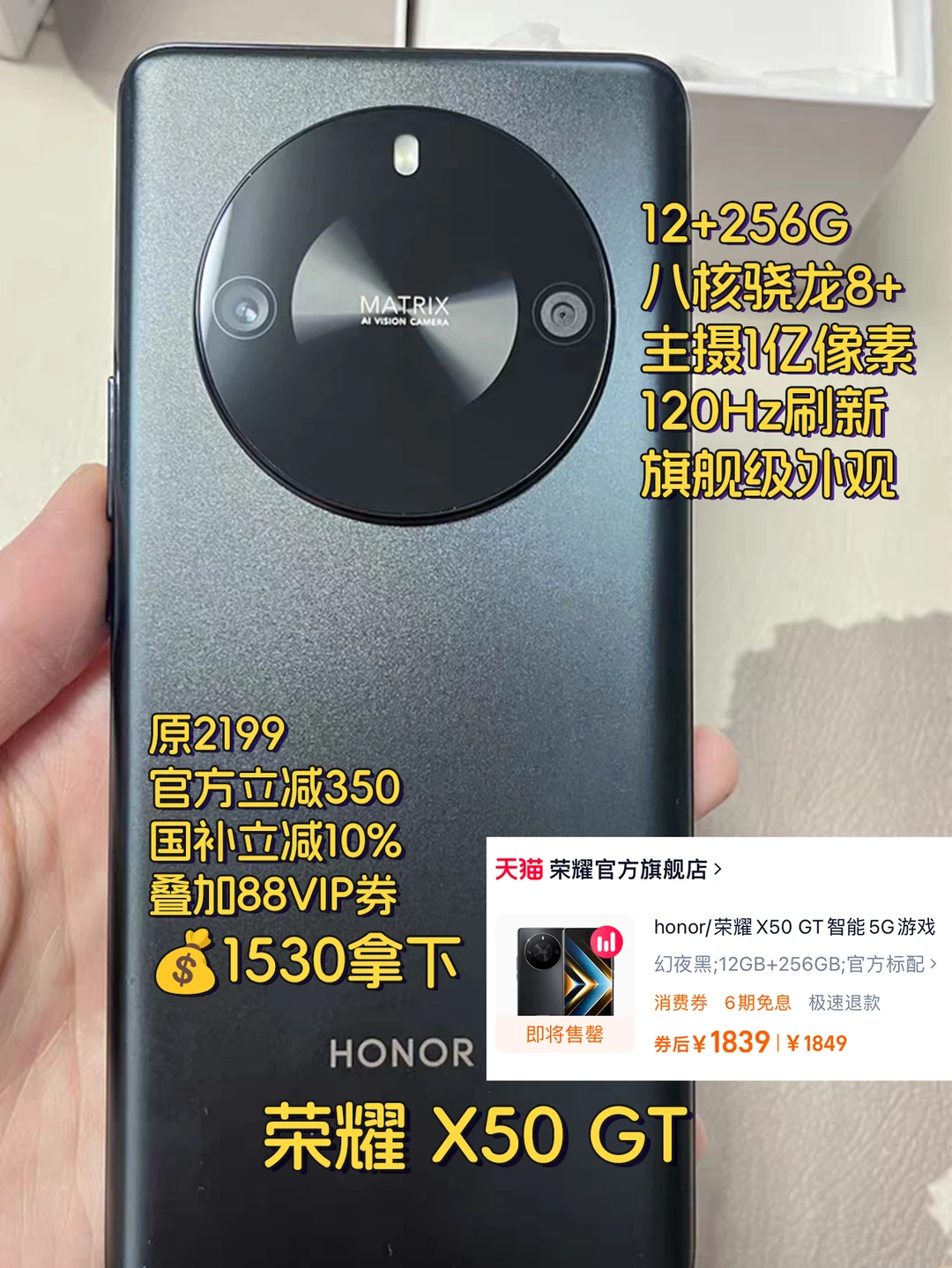 🌰像荣耀X50 GT正府补贴10%,只要1709🔥学生宝子买这款自己用,或者买来置换爸妈的老爷机都是很好的选择!(我就打算买一部换掉我爸用了好多年的手机~)