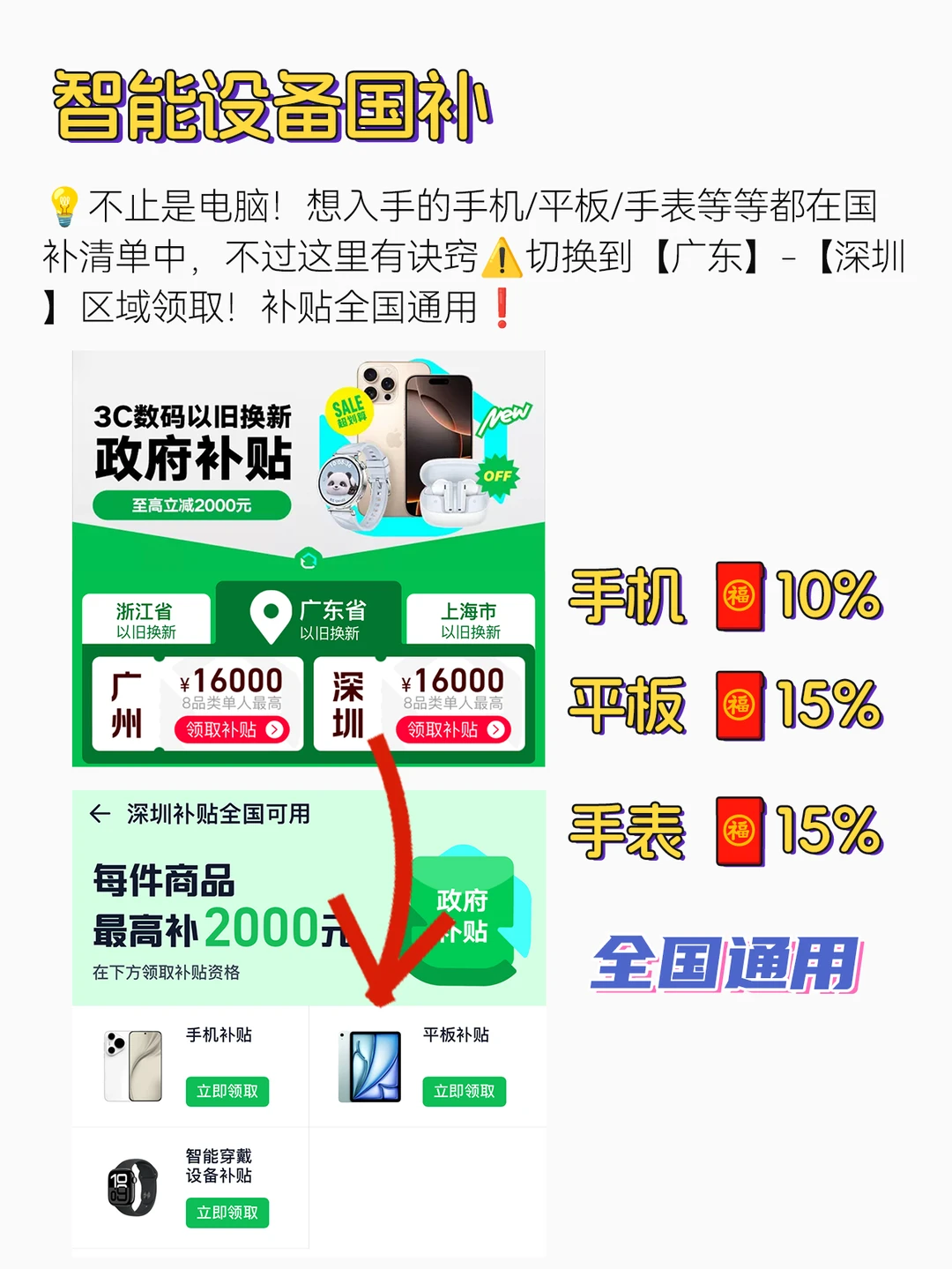 ⚠️手机/平板/手表国补都切到👉广东深圳区域领取!深圳补贴全国通用❗