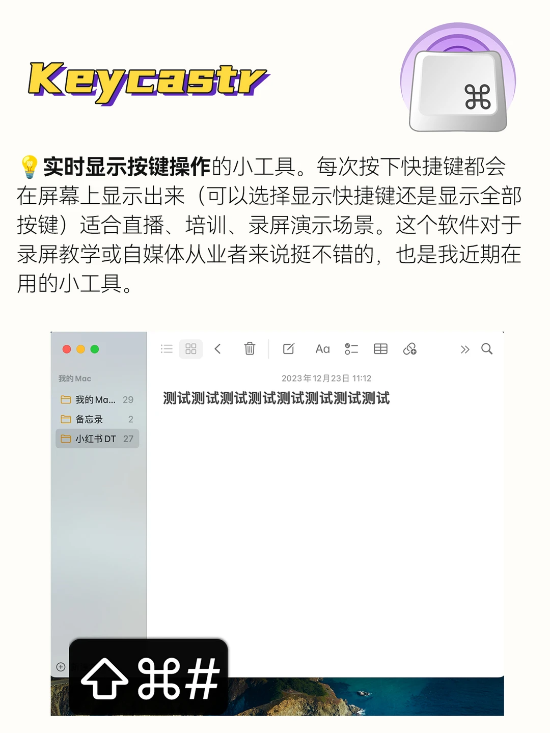 实时显示按键操作的小工具。每次按下快捷键都会在屏幕上显示出来(可以选择显示快捷键还是显示全部按键)适合直播、培训、录屏演示场景。这个软件对于录屏教学或自媒体从业者来说挺不错的,也是我近期在用的小工具。