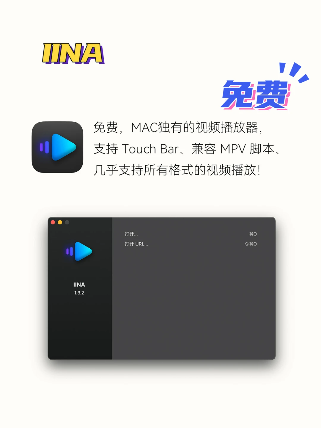 免费,Mac独有的视频播放器,支持 Touch Bar、兼容 MPV 脚本、几乎支持所有格式的视频播放!响应快速,用了它再也不想用MAC自带movie播放器。