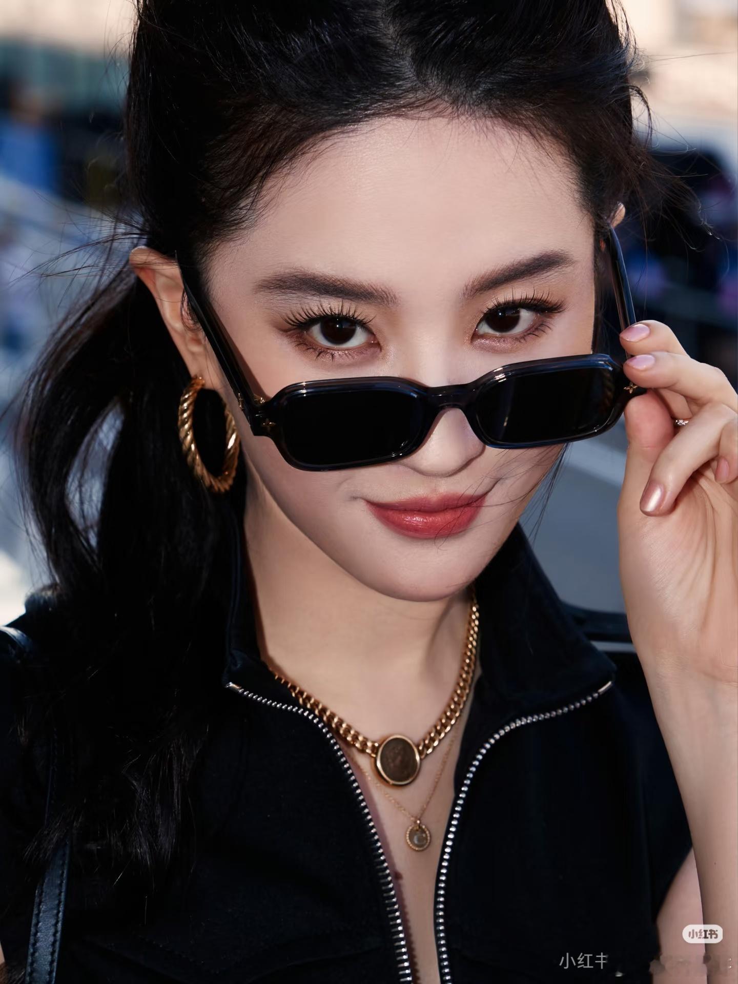 F1阿布扎比大奖赛的观赛活动上的刘亦菲,高马尾+黑色无袖束腰裙+黑墨镜,身材和外形都火辣辣的