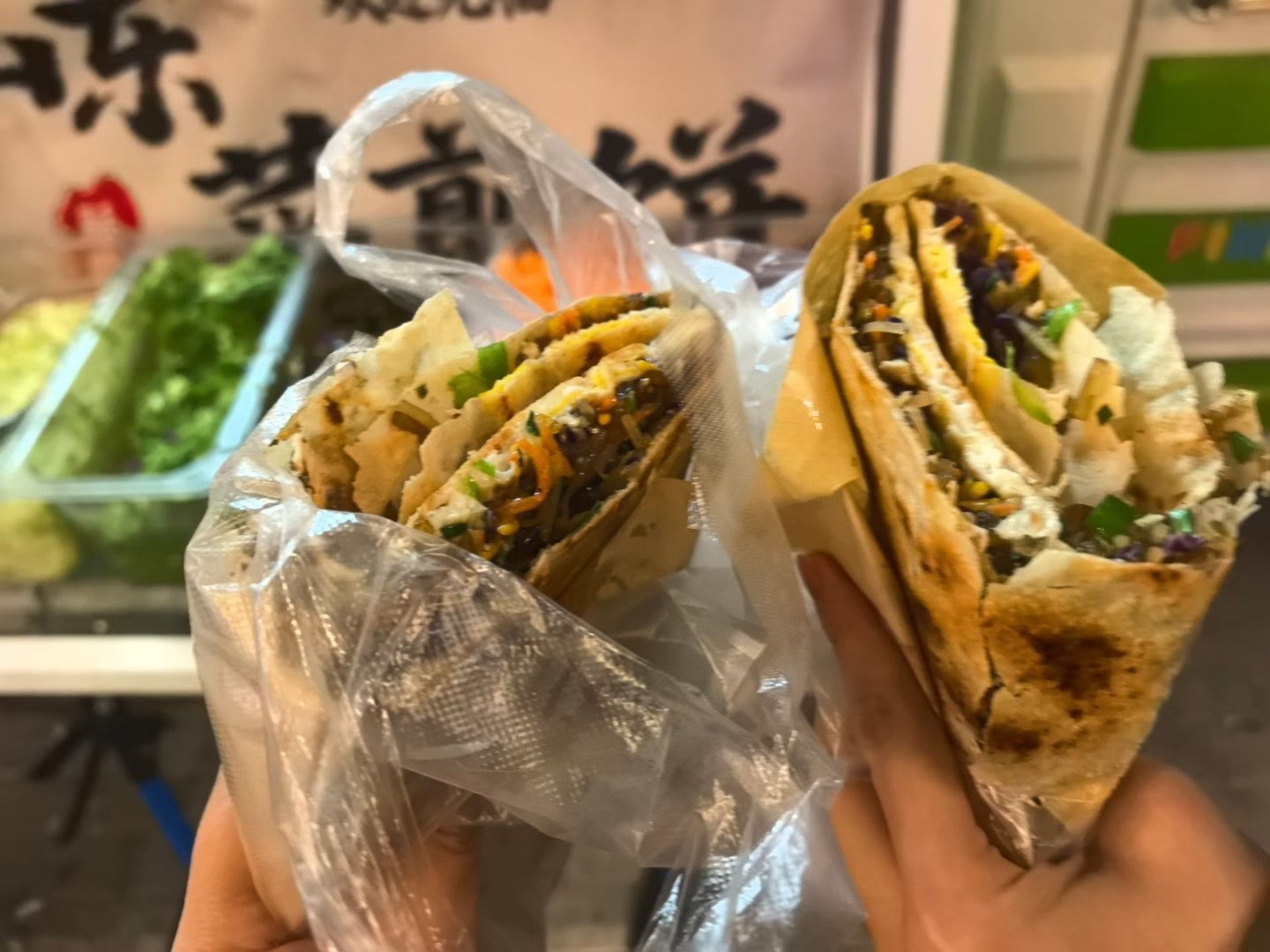 大晚上饿了,和好邻居一拍即合,约了个煎饼果子版夜宵,哈哈