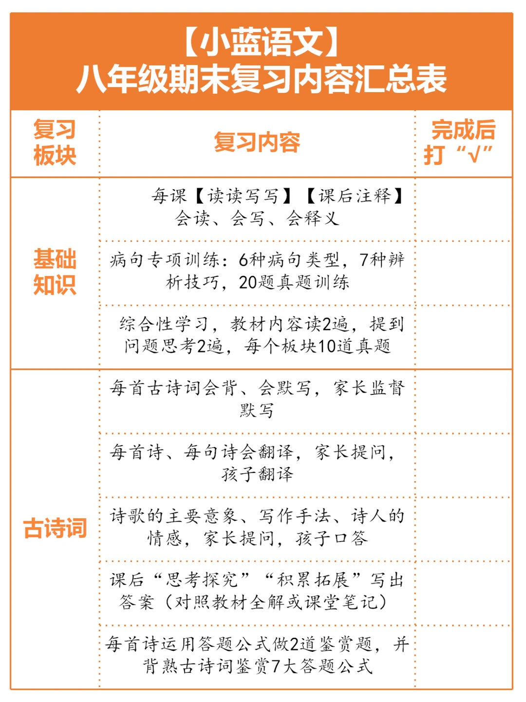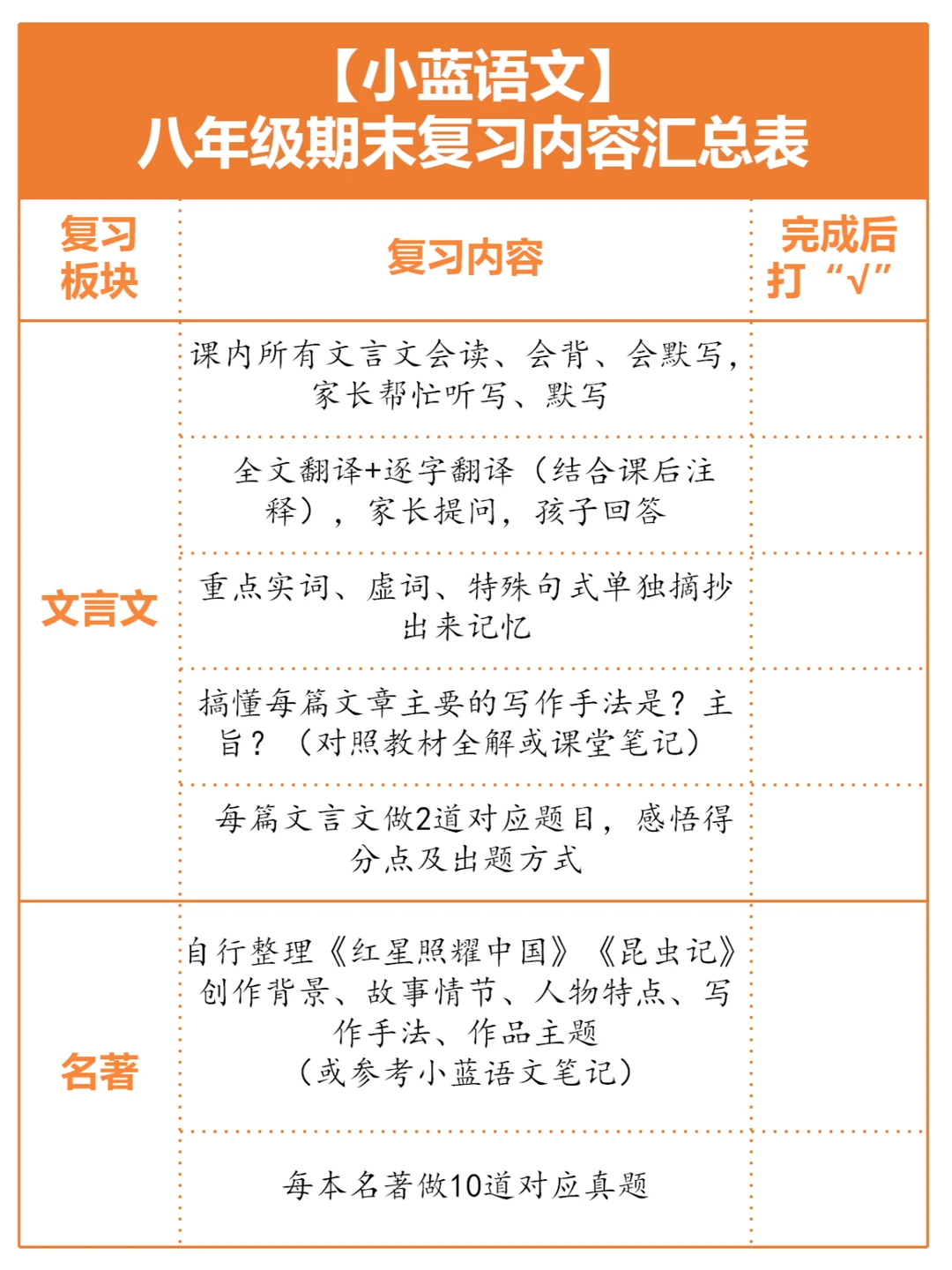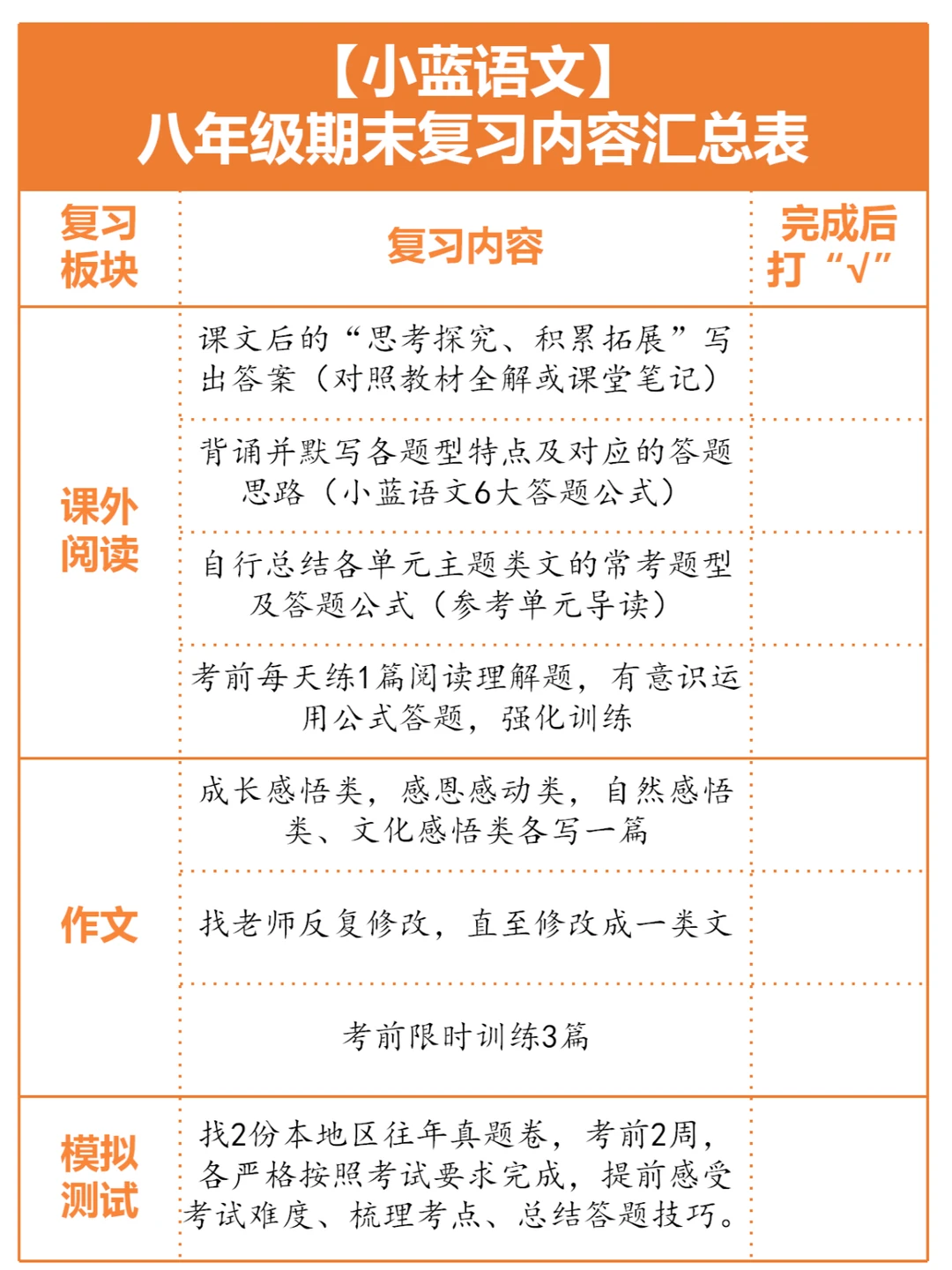 焦虑,马上就要期末考试了[捂脸R] 期末考试要怎么好好计划?今天做什么?明天做什么?[叹气R]这里找一点资料?那里问一些方法?[吃瓜R]问得越多,越迷茫[哭惹R] ❌ 不要再花里胡哨了,按照这个表格,一条条的检查,一条条梳理 ✔ 我自己当年读书的时候是这样做的,我的学生我也是这样要求的,你尽管打勾,剩下交给时间来证明,期末考试加油💪