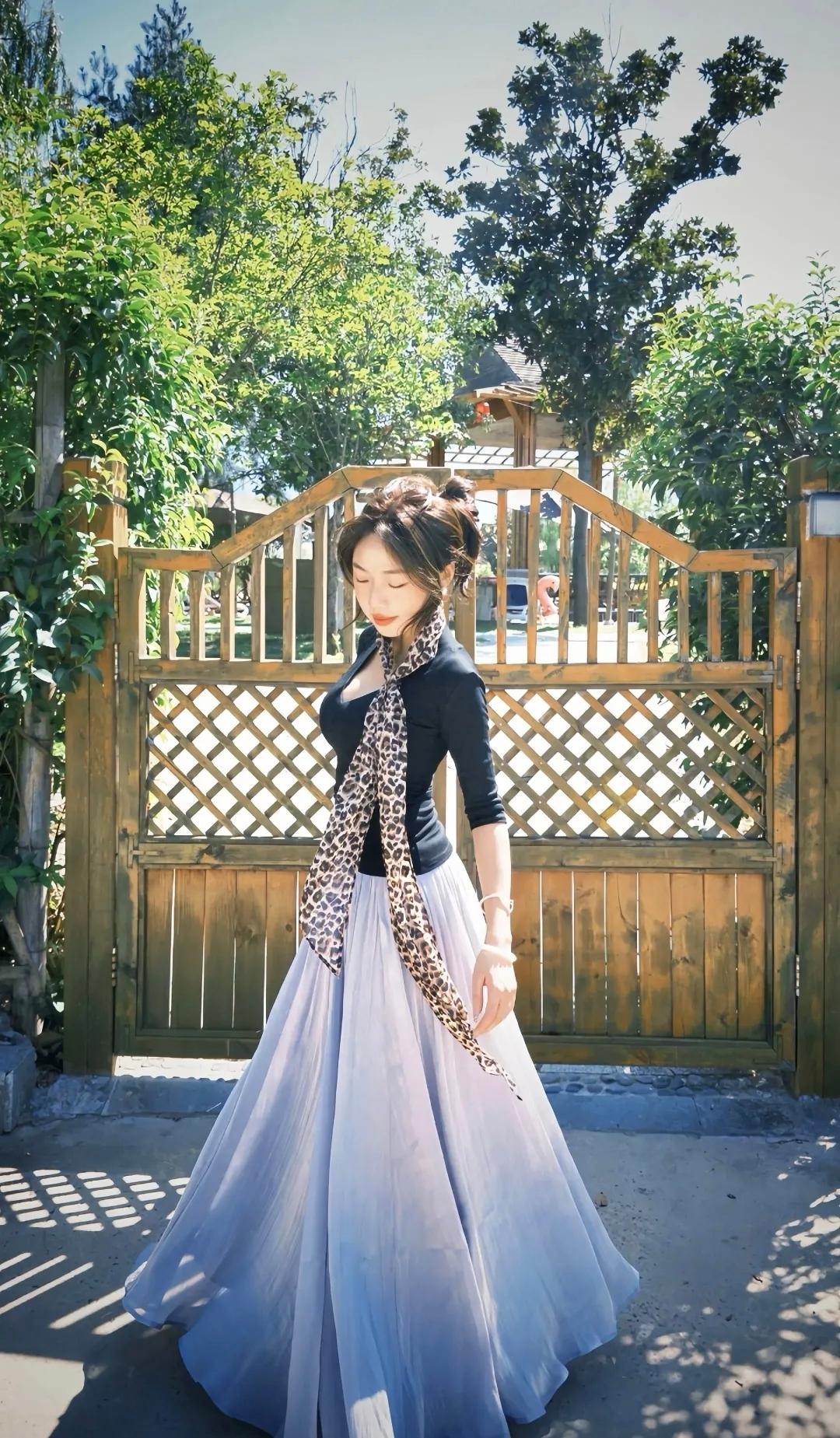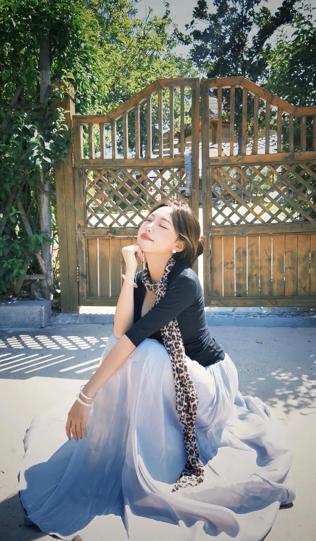 茶绿纱裙缠着凉意的柔,玉簪领系着浅淡的雅。耳坠垂成碎光的链,笑意比白瓣更先浸了春