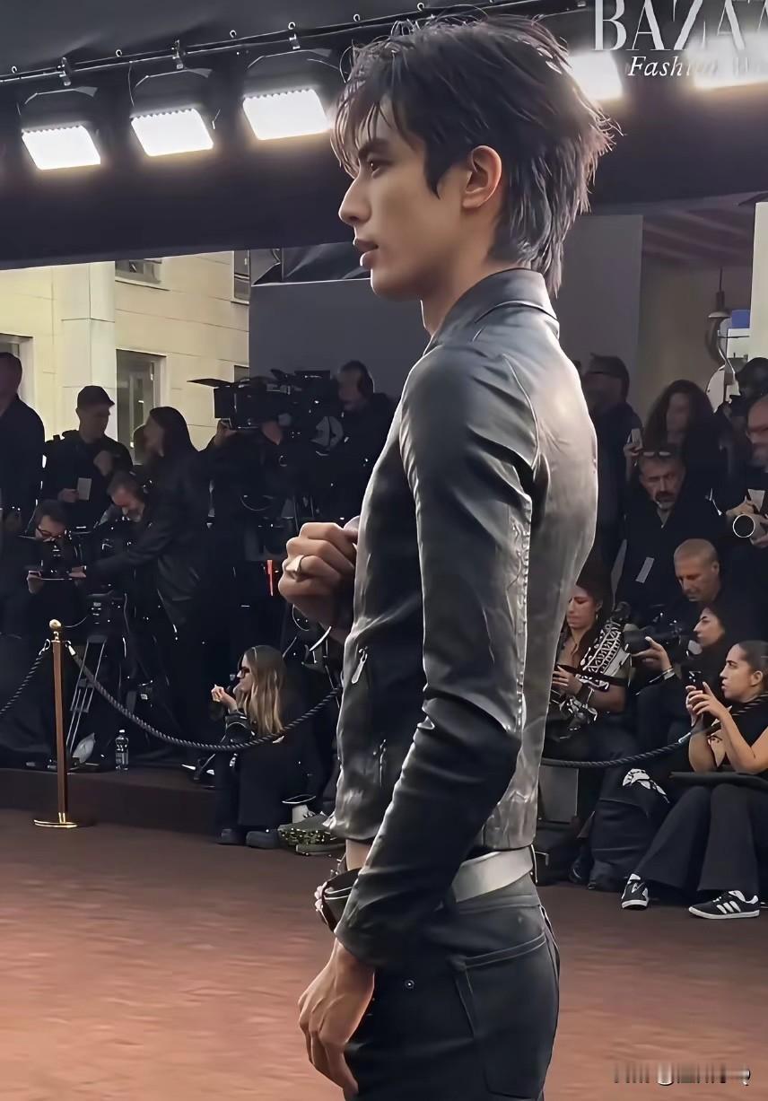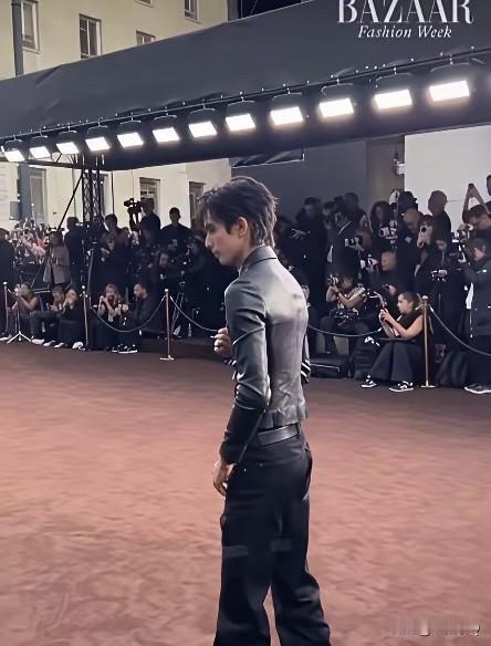 宋威龙身穿紧身皮衣,这身材惊呆我了,薄薄的一片,显得头大身小。